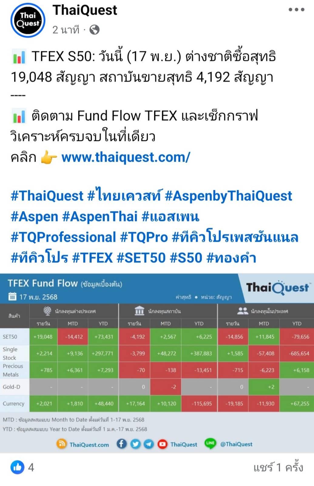 Sinthorn Summary 17/11/2568 : ต่างชาติซื้อสุทธิ 1,703.80 ลบ.