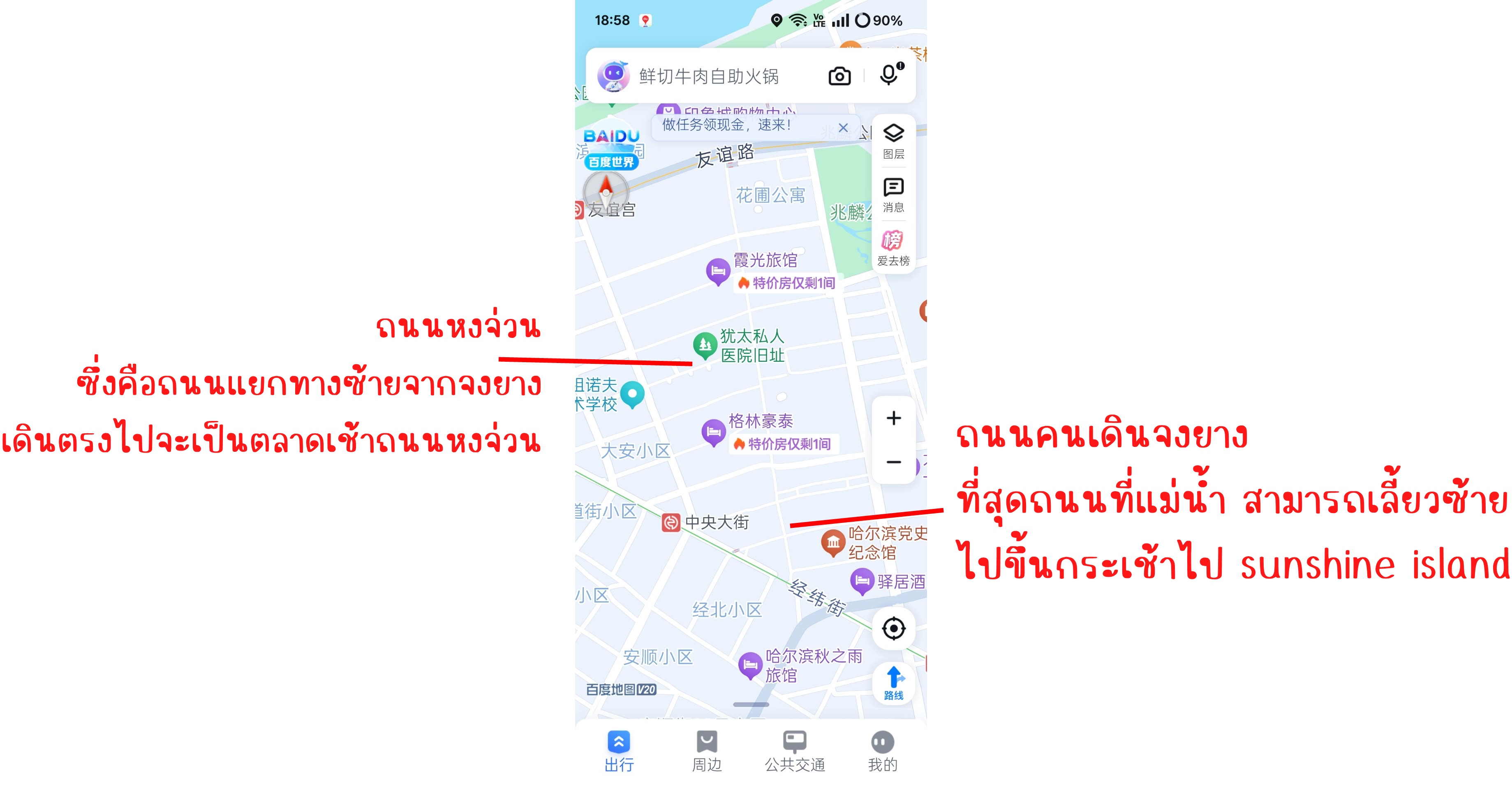 รถไฟฟ้าใต้ดินให้นั่งสาย 3 สีเหลือง ลงสถานี 清真寺 Harbin Mosque ห่างทางเข้าตลาดประมาณ 900 เมตร