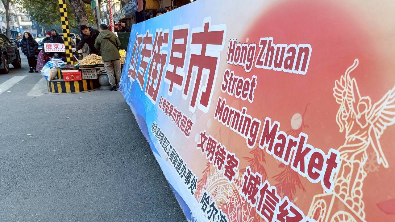 ที่ฮาร์บิน ซึ่งจริงๆเราคิดว่าในเมืองใหญ่ๆของเมืองจีน จะมีการเปิดตลาดเช้าเพื่อให้ประชาชนนำสินค้ามาขายโดยปิดถนนซึ่งปกติเป็นถนนที่รถยนต์สามารถสัญจรไปมาได้ในช่วงเช้า เขาเรียกเป็นภาษาอังกฤษว่า Farmer market หรือ morning market แต่เรามักเจอคำจีนที่ใช้รวมๆ ว่าตลาดเช้า 早市 ที่หงจ่วนก็เหมือนกันเขาก็จะปิดถนนประมาณตั้งแต่ตี 5 ถึง 9:00 น ทุกคนก็จะรู้ร่วมกันว่าพอถึงเวลาจะมีเจ้าหน้าที่มาให้คำแนะนำว่าจะต้องเก็บแผงสินค้าแล้วพ่อค้าแม่ค้าเขาก็จะรู้กันดี