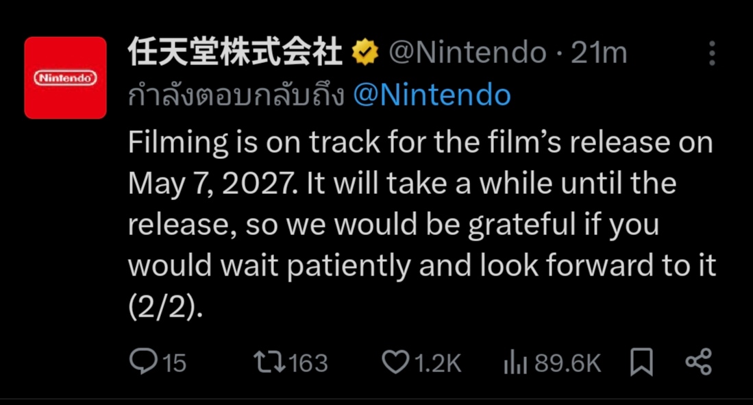 ซึ่งใน x ของ nintendo ได้โพสต์ตามนี้ครับ