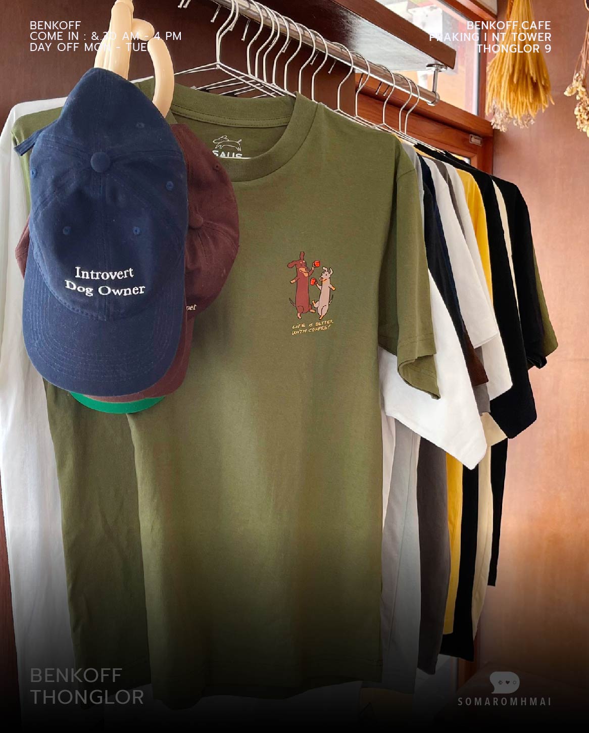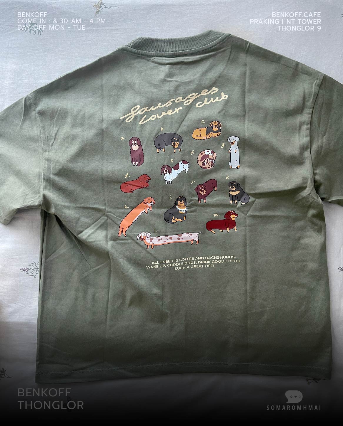 ที่ร้านมีของขายต่างๆด้วย หมวก สตก แม่เหล็กติดตู้เย็น - เสื้อที่ฮิตๆ ลายน้องพันธ์ุ Dachshund @saus.bkk กลุ่มคนรักน้องหมา ดัชชุน เลิฟๆ @bobby.brownsausage ผมทุบเสื้อไป1 ตัวเเล้ว สีเขียวเฉดอ่อนๆ อมเทา ของจริงสวยมากๆ