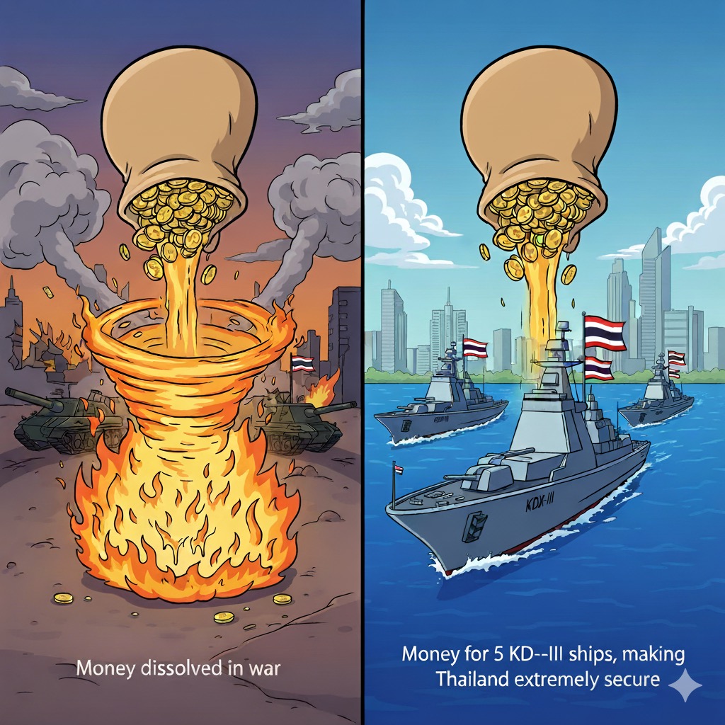 * แต่ถ้าไทยเดินเข้าไปพร้อมสมุดเช็คแสนล้านเพื่อซื้อ KDX-III ทรัมป์จะลืมคำหวานของเขมรทันที และหันมาสนับสนุนไทยให้เป็น "เบอร์ 1 ในอาเซียน" แทน เพราะนั่นคือกำไรเข้าประเทศเขาเน้นๆ ครับ