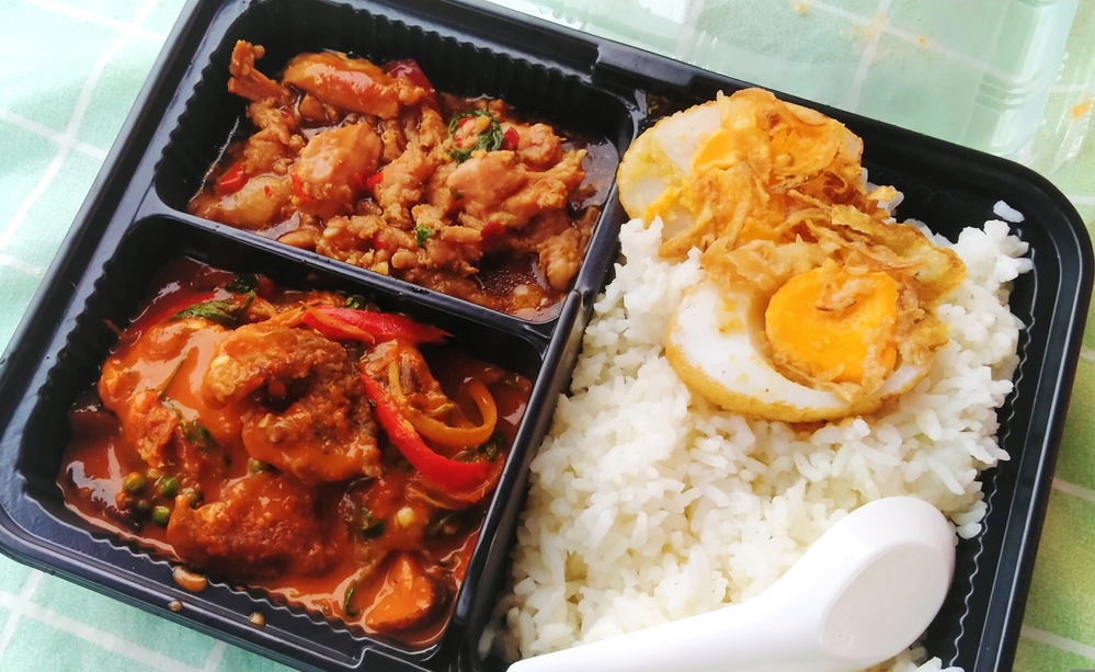 คะน้าหมูชิ้น + กะเพราไก่ + ไข่ลูกเขย 🍱
