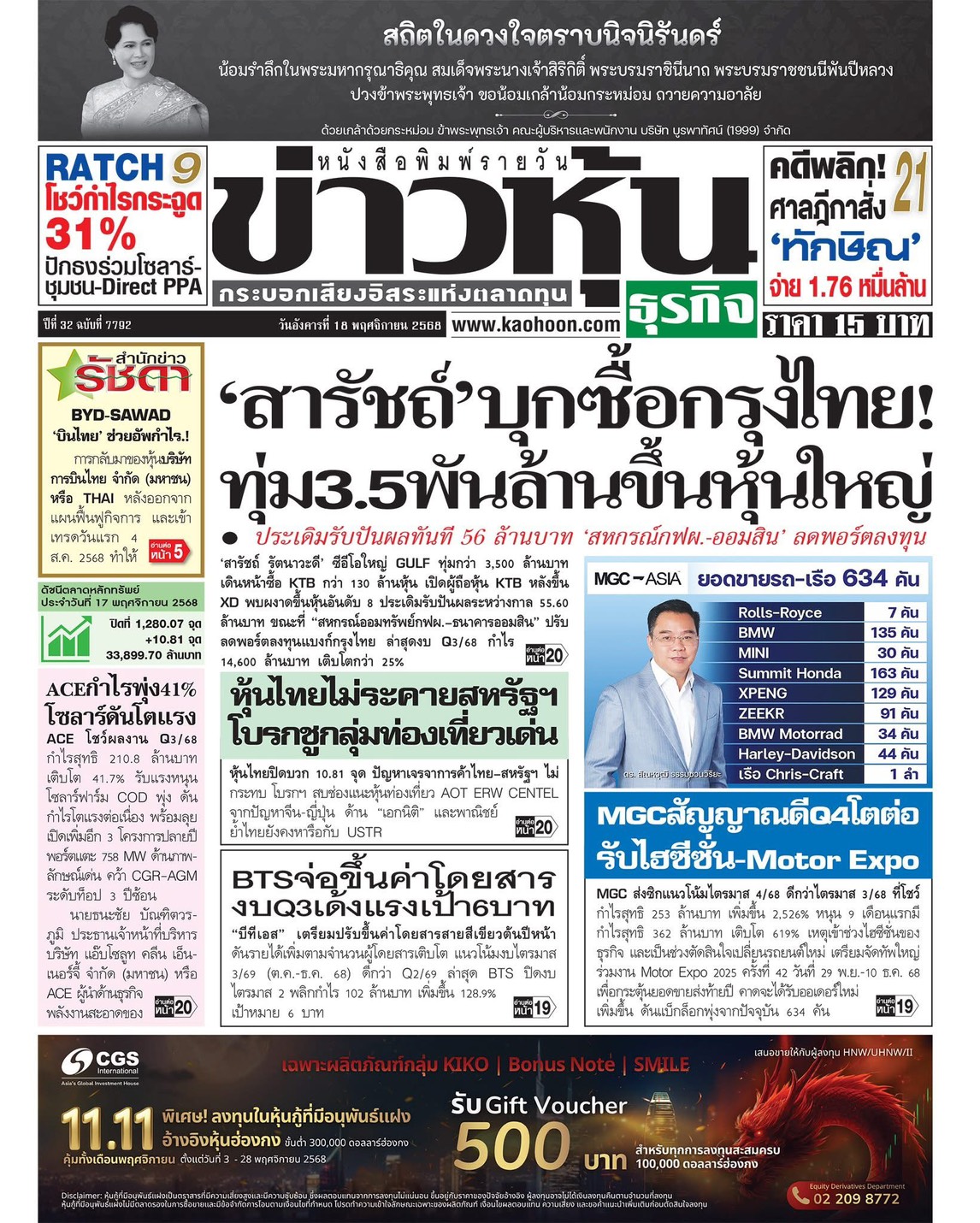 กรอบการลงทุน วันที่ 18 พย 2025