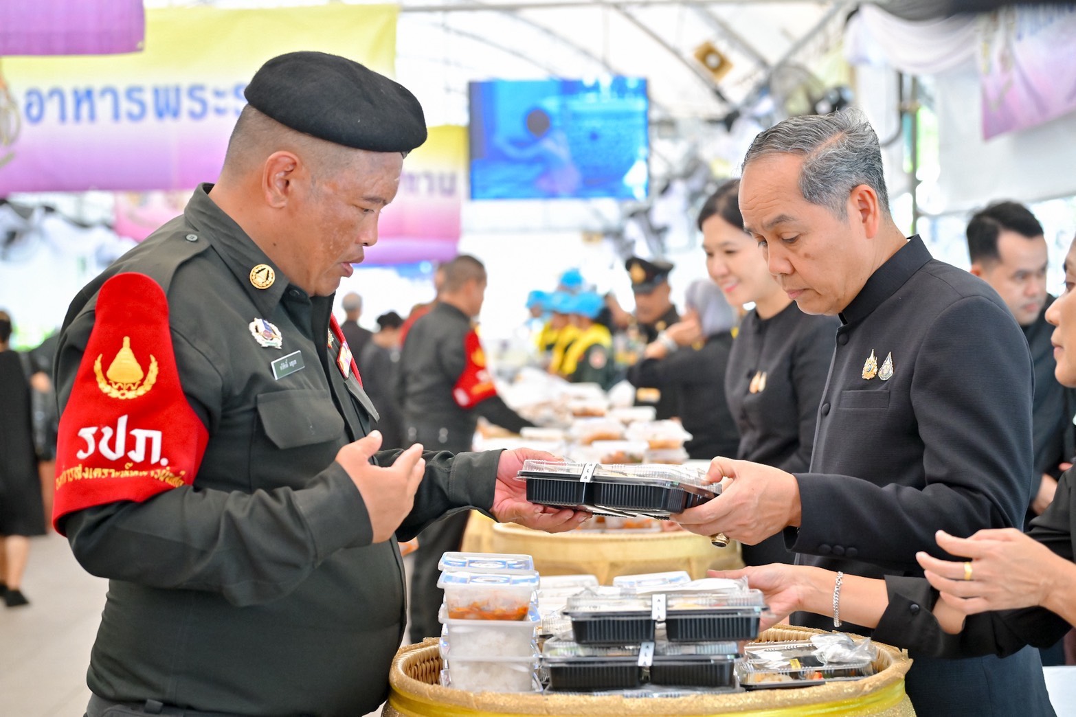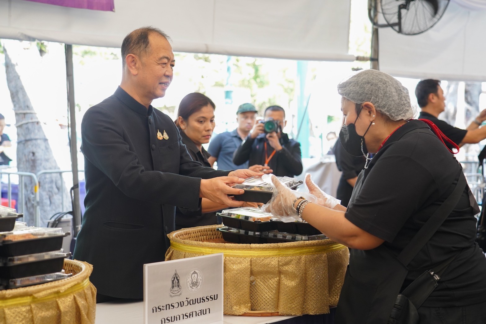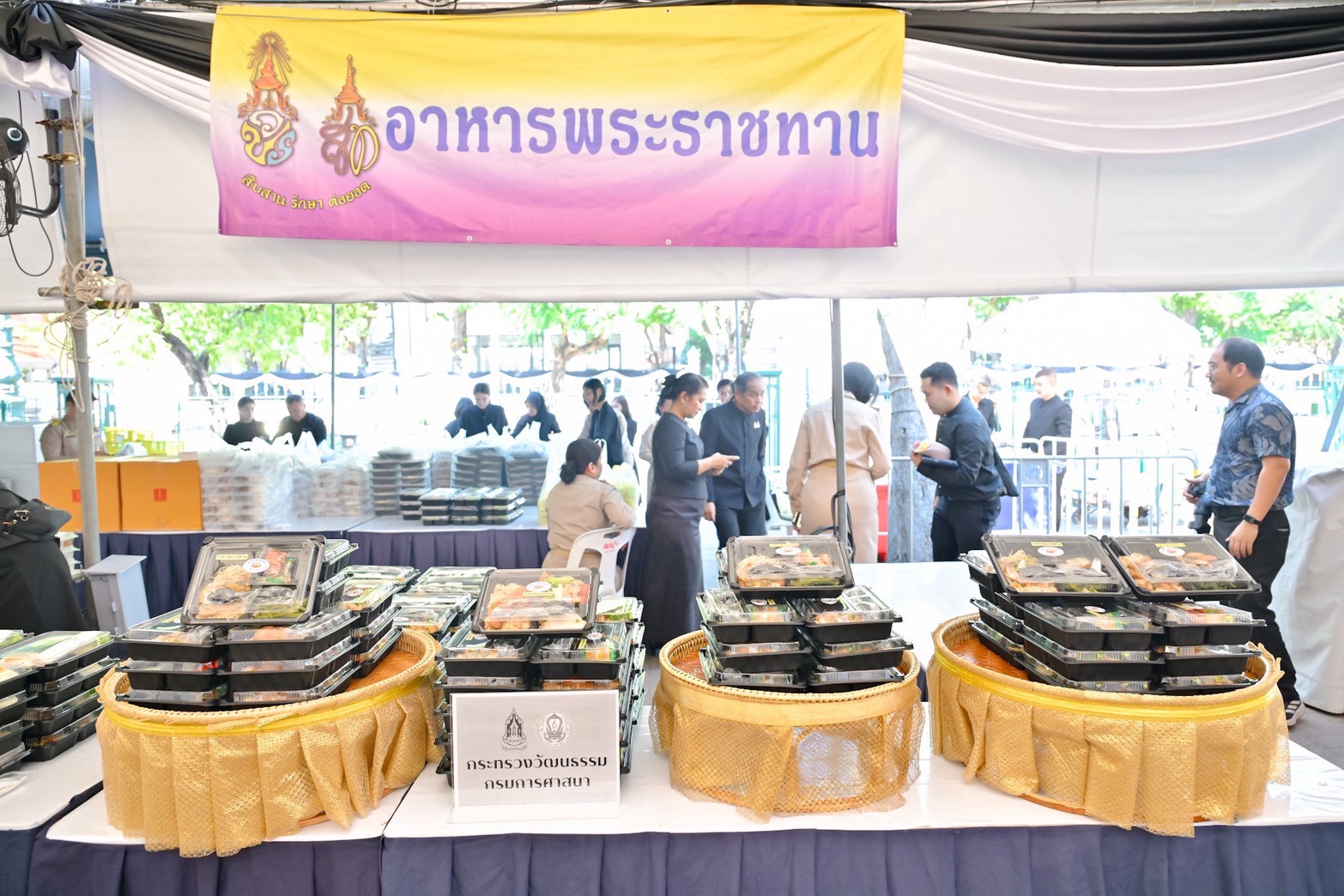 พร้อมกันนี้ นายประสพ เรียงเงิน ปลัดกระทรวงวัฒนธรรม ได้ร่วมแจกอาหารบริการประชาชนที่มาร่วมถวายอาลัย โดยมี นายชัยพล สุขเอี่ยม อธิบดีกรมการศาสนา คณะผู้บริหารกระทรวงวัฒนธรรม และเจ้าหน้าที่ ร่วมบริการประชาชนอย่างพร้อมเพรียง