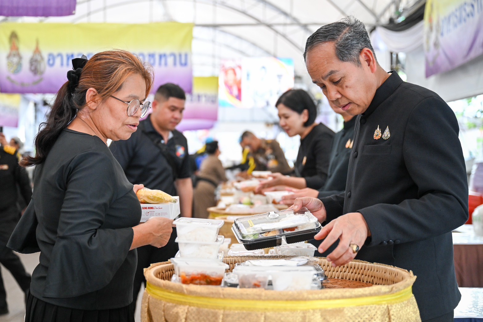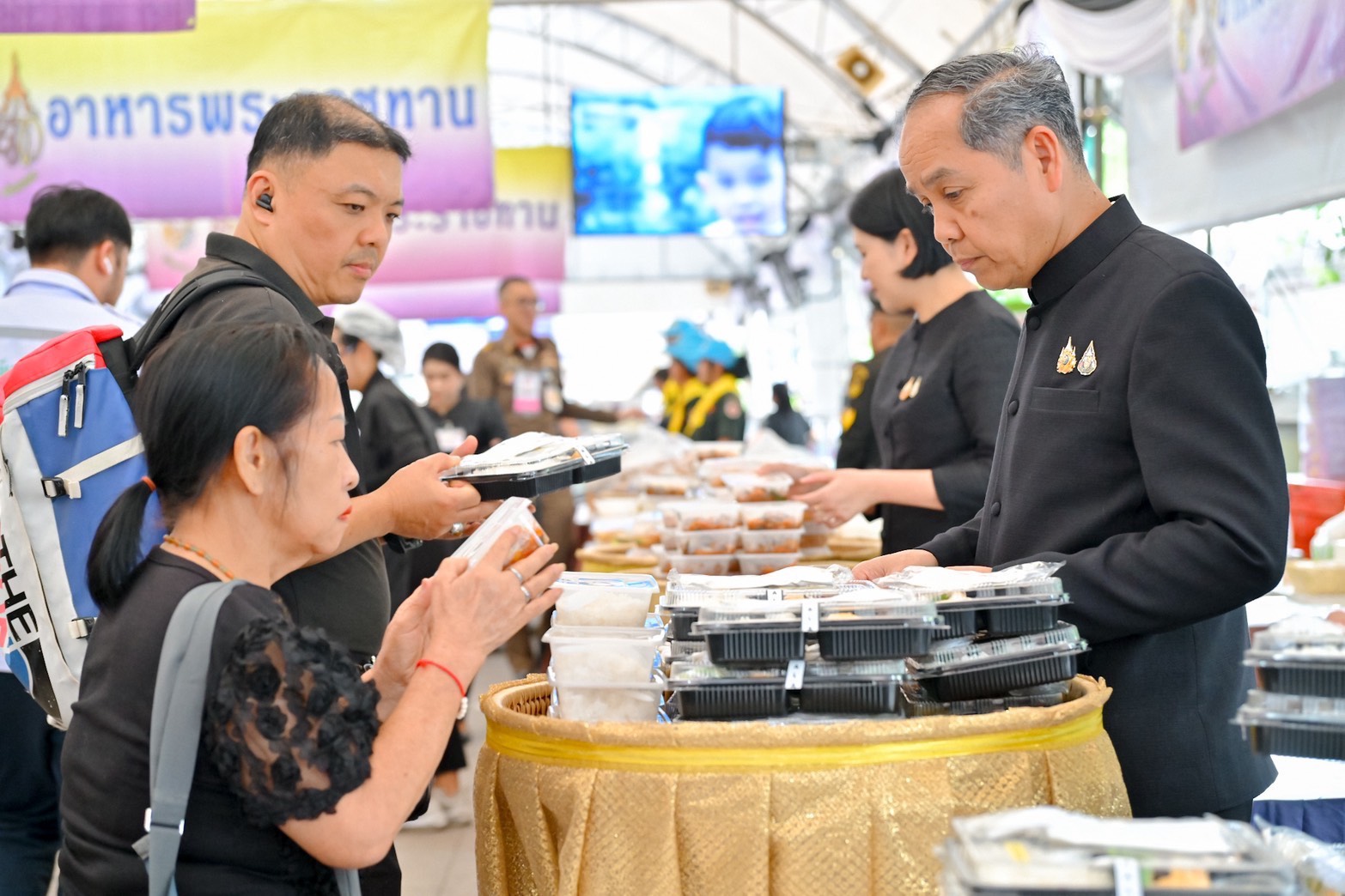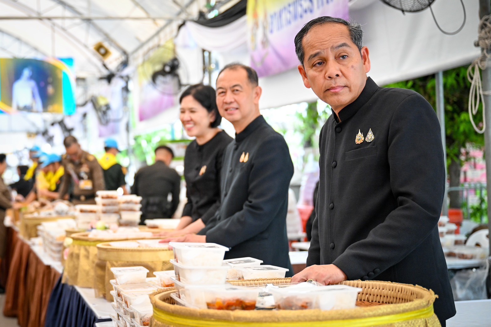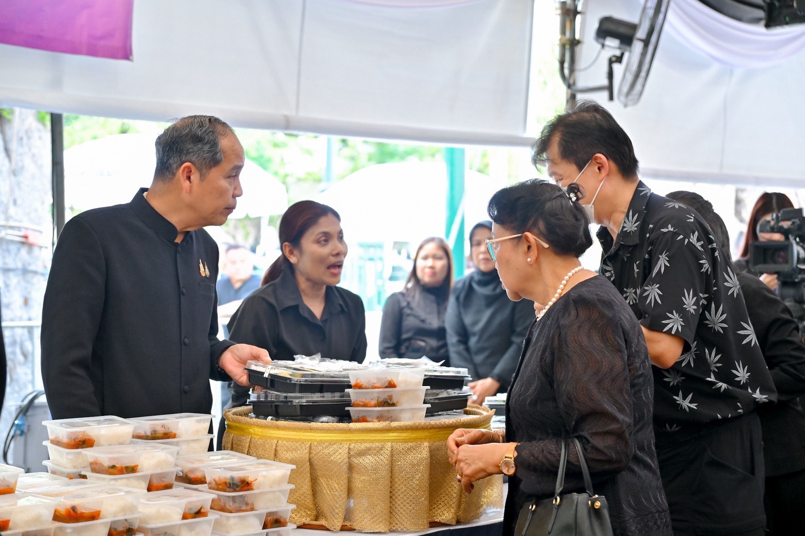 พร้อมกันนี้ นายประสพ เรียงเงิน ปลัดกระทรวงวัฒนธรรม ได้ร่วมแจกอาหารบริการประชาชนที่มาร่วมถวายอาลัย โดยมี นายชัยพล สุขเอี่ยม อธิบดีกรมการศาสนา คณะผู้บริหารกระทรวงวัฒนธรรม และเจ้าหน้าที่ ร่วมบริการประชาชนอย่างพร้อมเพรียง