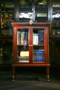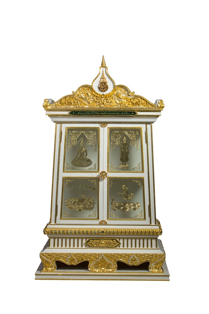 4.ตู้สังเค็ดหรือตู้ใส่หนังสือประดับด้วยภาพพระราชนิพนธ์ พระมหาชนก