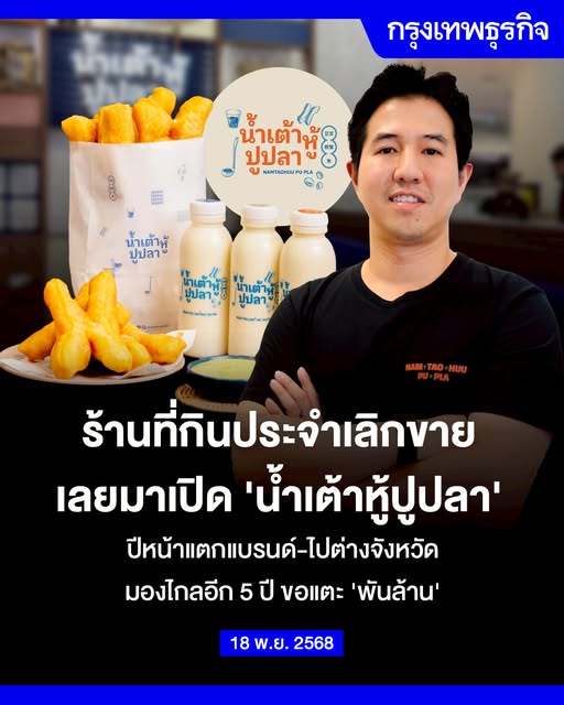 ร้านน้ำเต้าหู้ที่เริ่มจาก “ร้านประจำปิดตัว” → โต 40 ล้านในปีเดียว! ตั้งเป้า 5 ปีแตะพันล้าน — นี่คือเรื่องของ “น้ำเต้าหู้ปูปลา”
