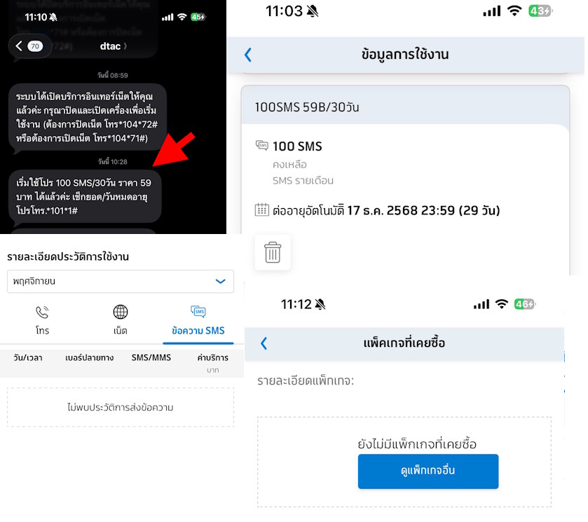 ไม่มีsmsยืนยันการต่อแพคเกจ