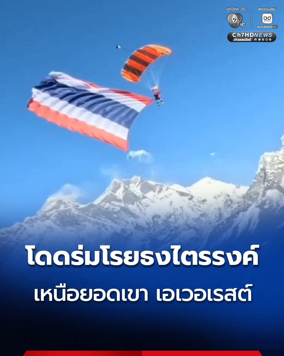 คนไทยทำสำเร็จ ธงชาติไทยปลิวโบกไสว สร้างประวัติศาสตร์ท้ามฤตยูกระโดดบนความสูง 26,000 ฟุตเหนือยอดเขาเอเวอเรสต์