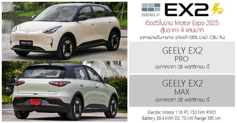 เปิดสเป็ค – ภาพรถคันจริง GEELY EX2 รถไฟฟ้า100% เวอร์ชั่นไทย 2 รุ่นย่อย ลุ้นราคา 4 แสนบาท