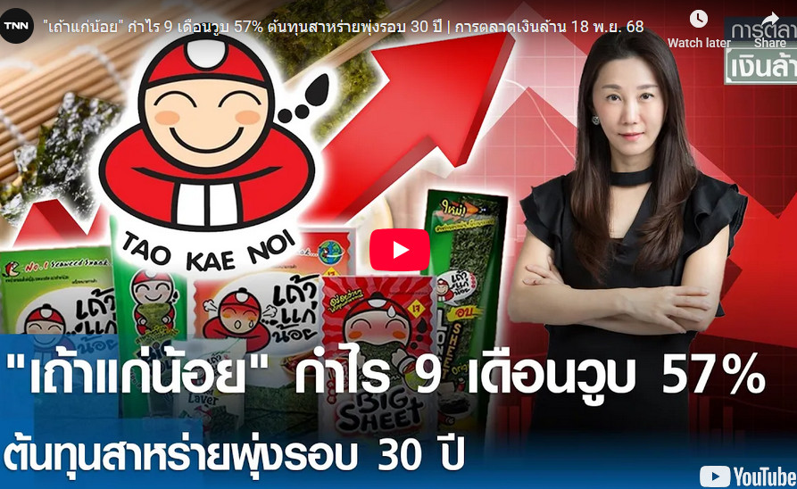 "เถ้าแก่น้อย" กำไร 9 เดือนวูบ 57% ต้นทุนสาหร่ายพุ่งรอบ 30 ปี