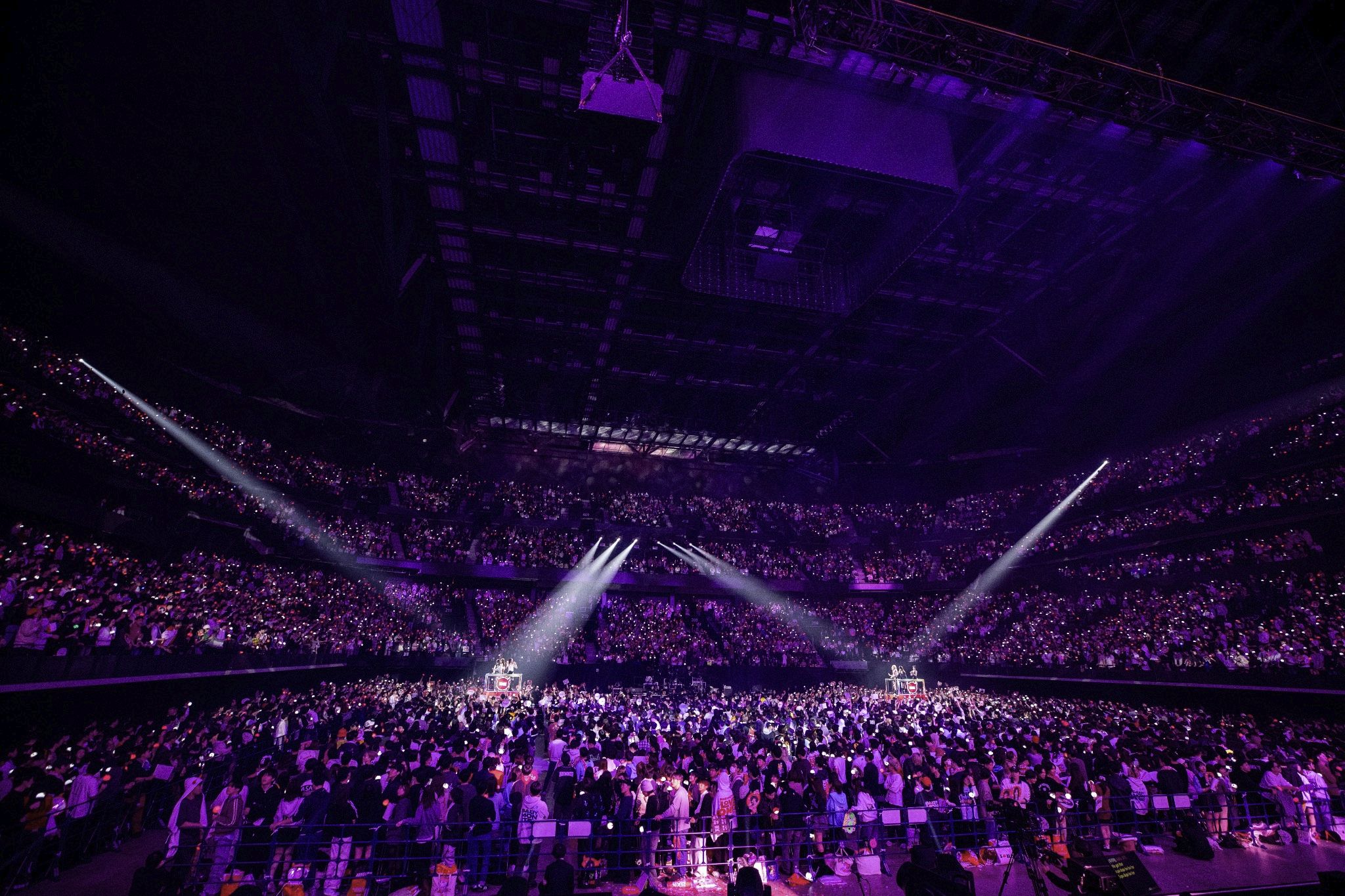 บรรยากาศ Fan Concert ก็จะประมาณนี้ ที่นั่ง Sold Out เต็มความจุ ทั้งสองรอบ แล้วมีการใช้รถรางขนาดเล็กพาเด็กๆ ไปหาคนดูแบบใกล้ชิดด้วย ไอเดียดีมาก ภาพออกมาก็สวยมากๆ เช่นกัน