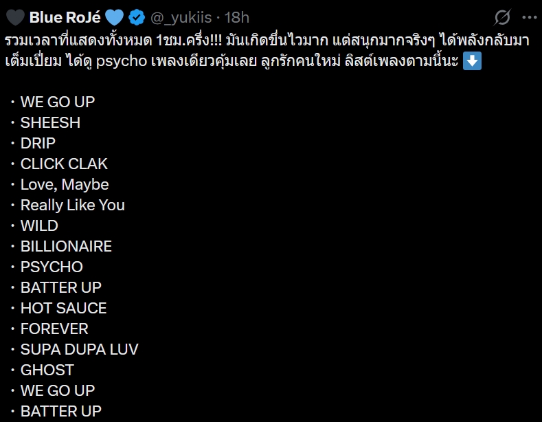 เพลง We Go UP + Live Band คือที่สุดจริงๆ นี่ถ้าได้วง Backup ระดับเดียวกับ Blackpink คงจะมันส์กว่านี้มากๆ แน่ๆ เรียบเรียงเป็น Rock Version แล้วมันส์จริงๆ เสียงกลองแน่นมาก เร้าอารมณ์ในคอนได้สุดๆ เลย ดีกว่าตอนไปแสดงในรายการเพลงเยอะเลย เพราะได้อารมณ์กว่ามากจริงๆ