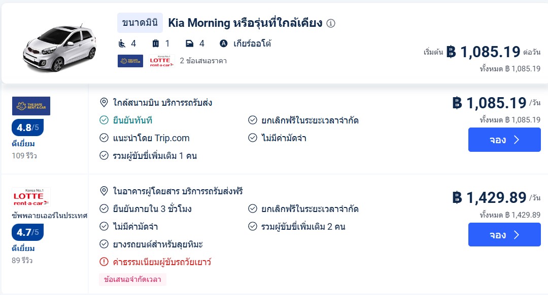 การเช่ารถเราจองผ่าน trip.com สะดวกมากๆค่ะสามารถเลือกสถานที่รับรถได้เลย ในส่วนราคามีให้เลือกหลายเจ้าสามารถเลือกเจ้าที่ถูกที่สุดได้เลย