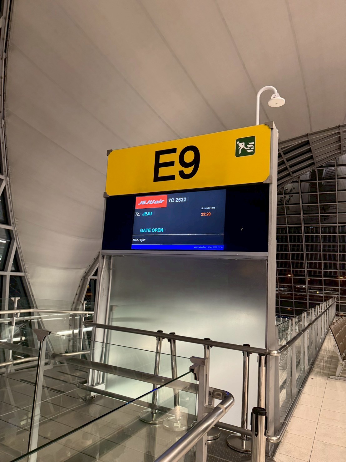 ทัวร์นัดเจอที่สนามบินสุวรรณภูมิเวลา 20.00 น.(ไม่เกิน 20.30น.) จากนั้นก็เช็คอินเรียบร้อย สายการบินที่บินคือ JEJU AIR ค่ะ