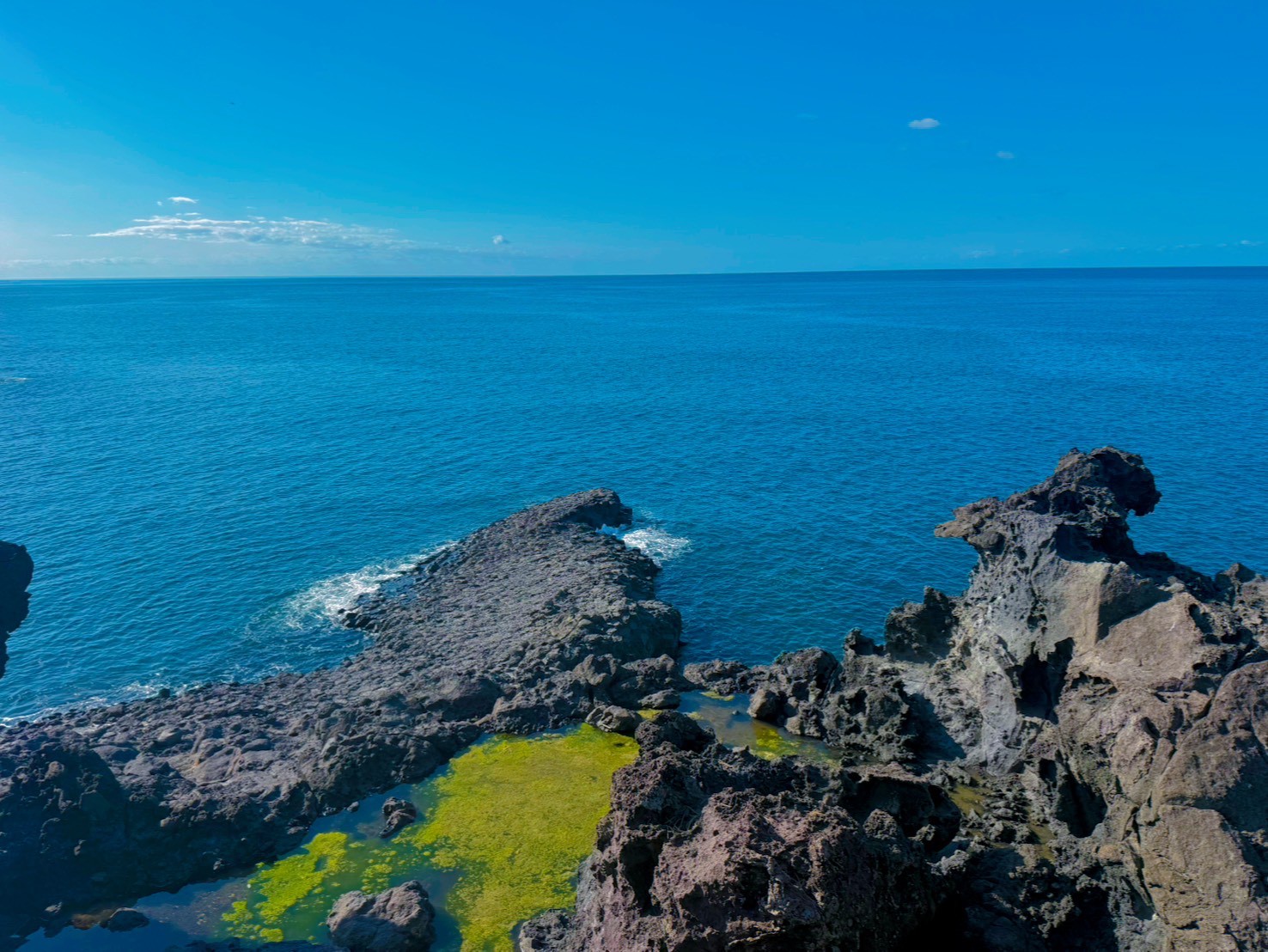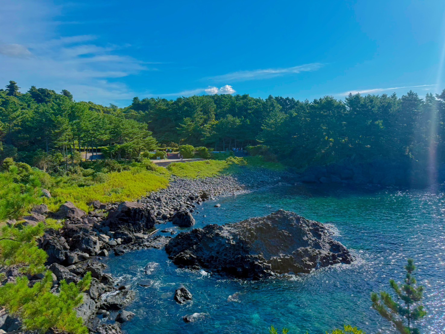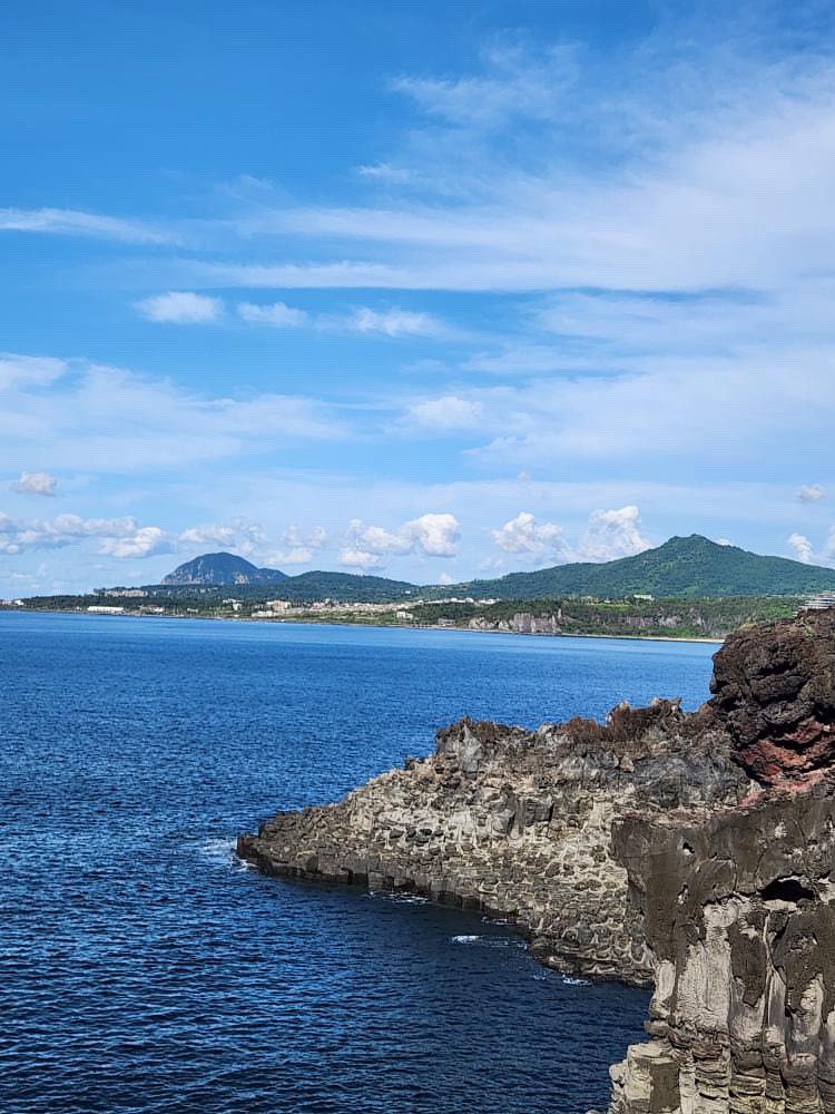 ที่แรกที่เรามาคือ โขดหินจูซังจอลรีแด Daepo Jusangjeolli Cliff (주상절리대(대포동지삿개))