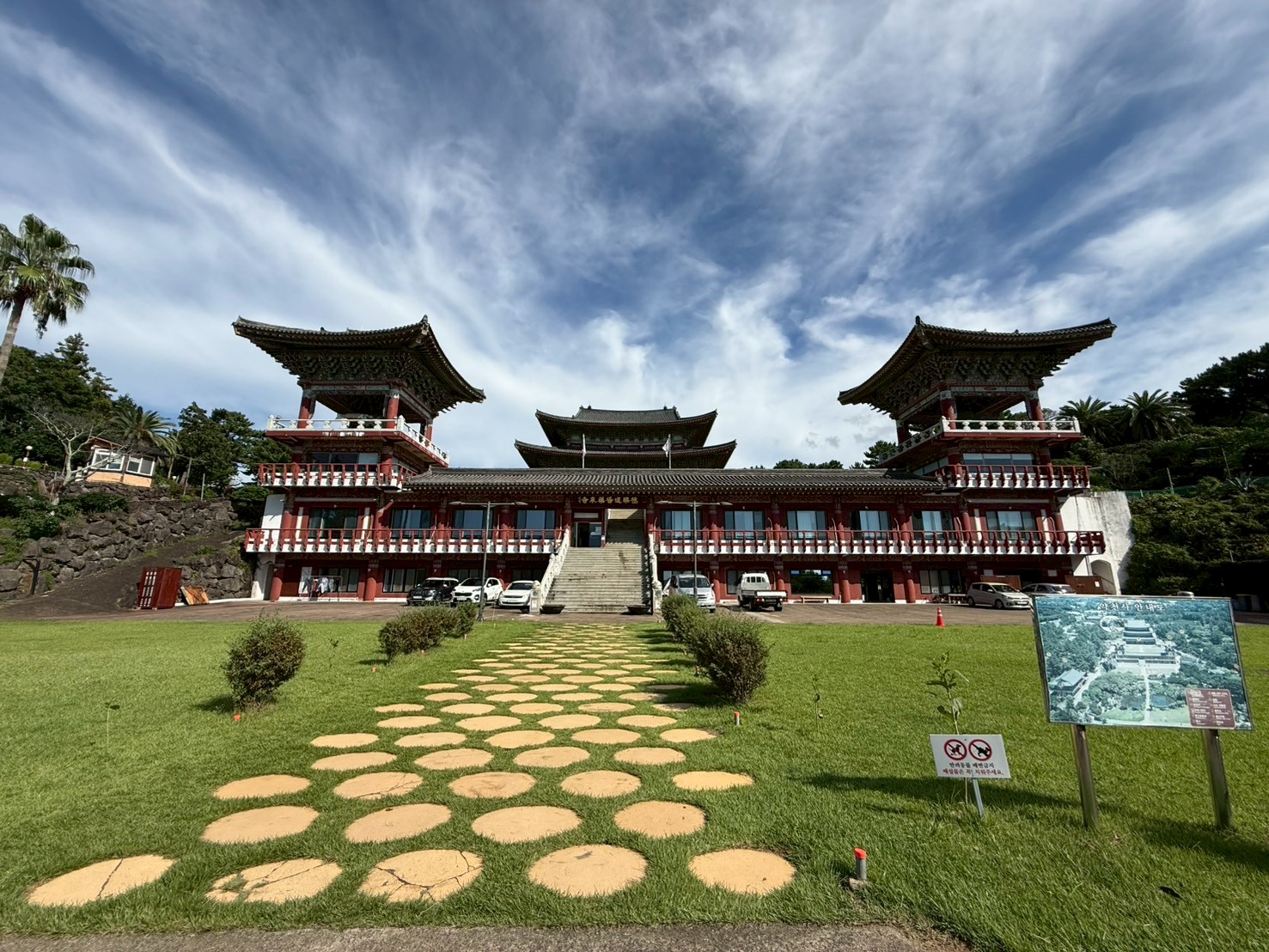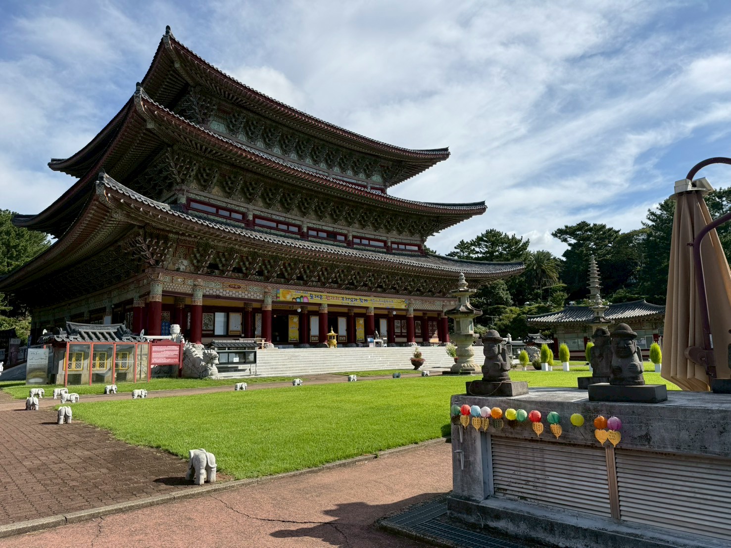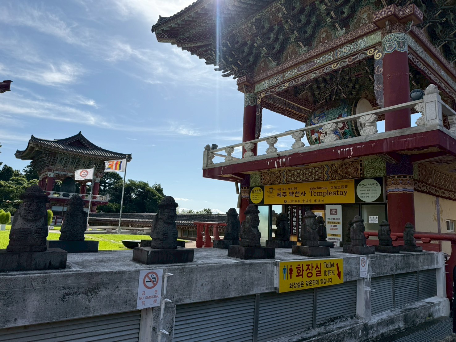 ไปกันต่อ ที่วัดยักชอนซา – Yakcheonsa Temple (약천사(제주)) หรือ วัดน้ำศักดิ์สิทธิ์ เป็นวัดที่เก่าแก่ของเกาะเชจู สร้างตั้งแต่สมัยเริ่มต้นราชวงศ์โชซอน นอกจากนี้ยังเป็นวัดที่มีขนาดใหญ่มากโดยตัววัดสูงถึง 30 เมตร
