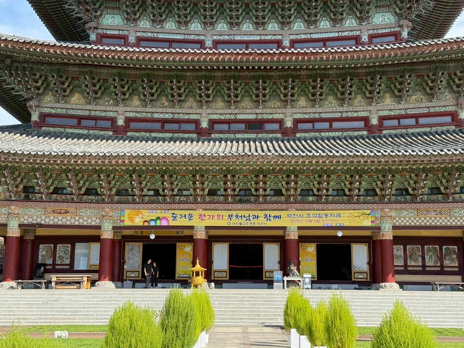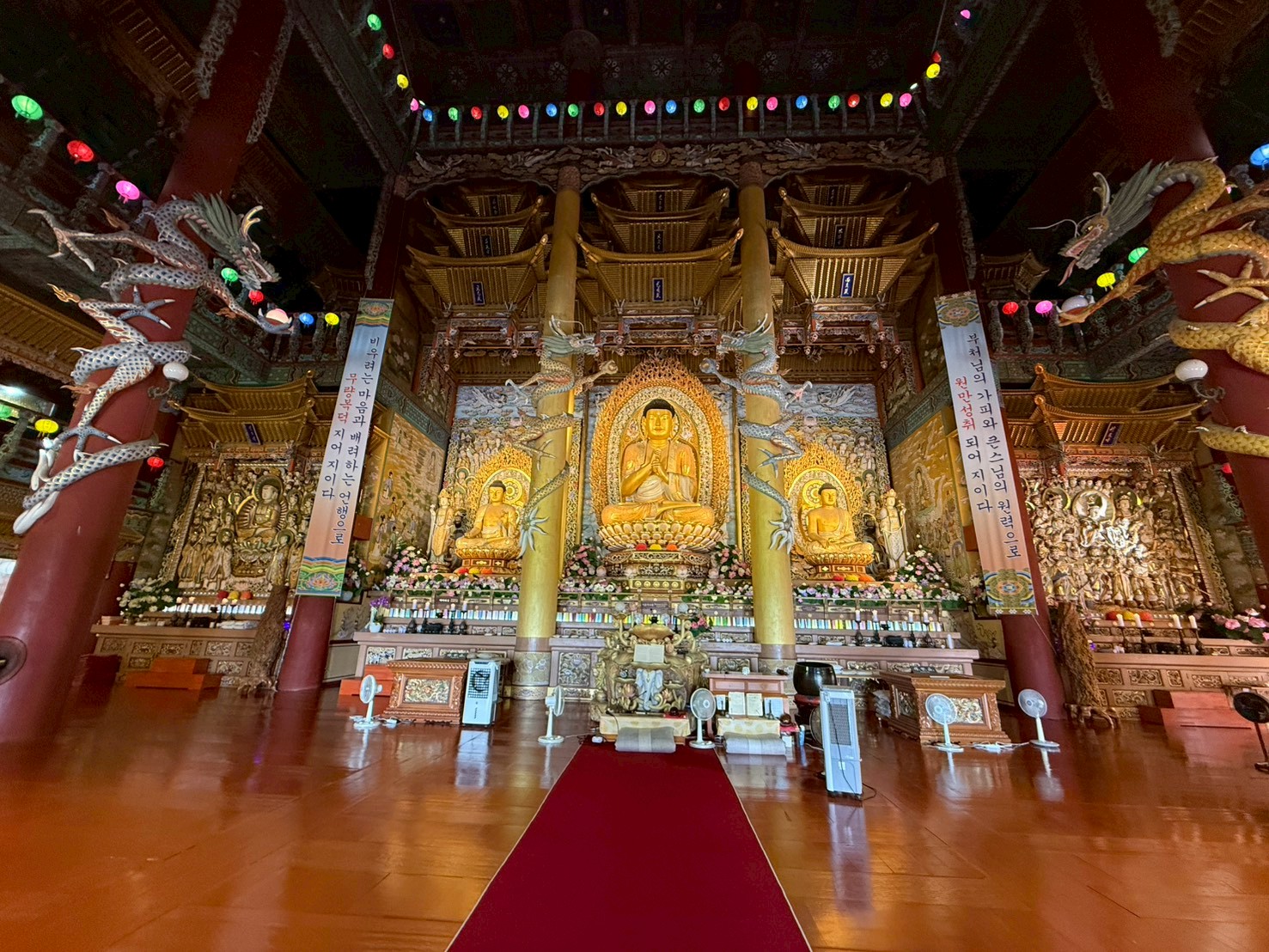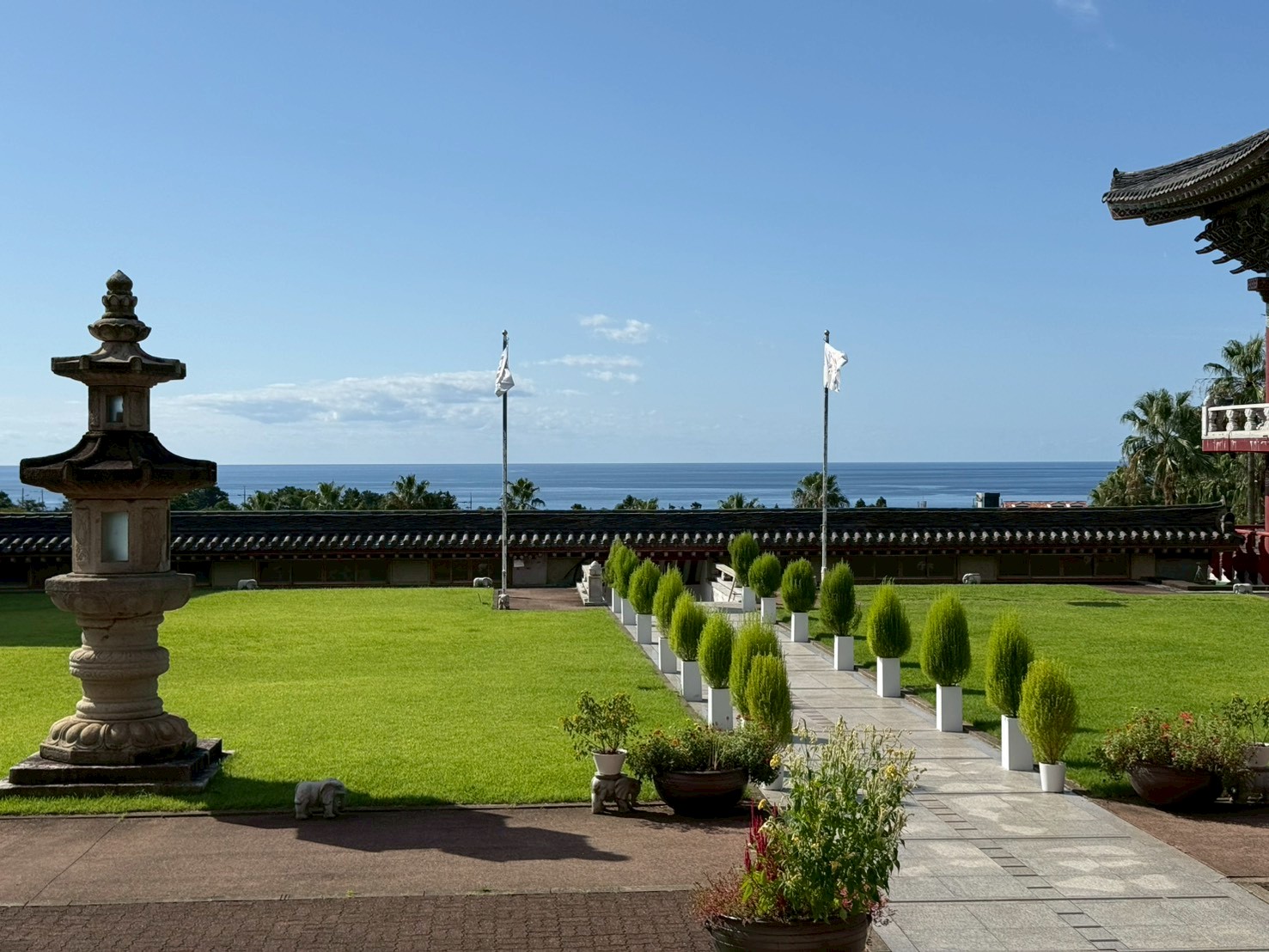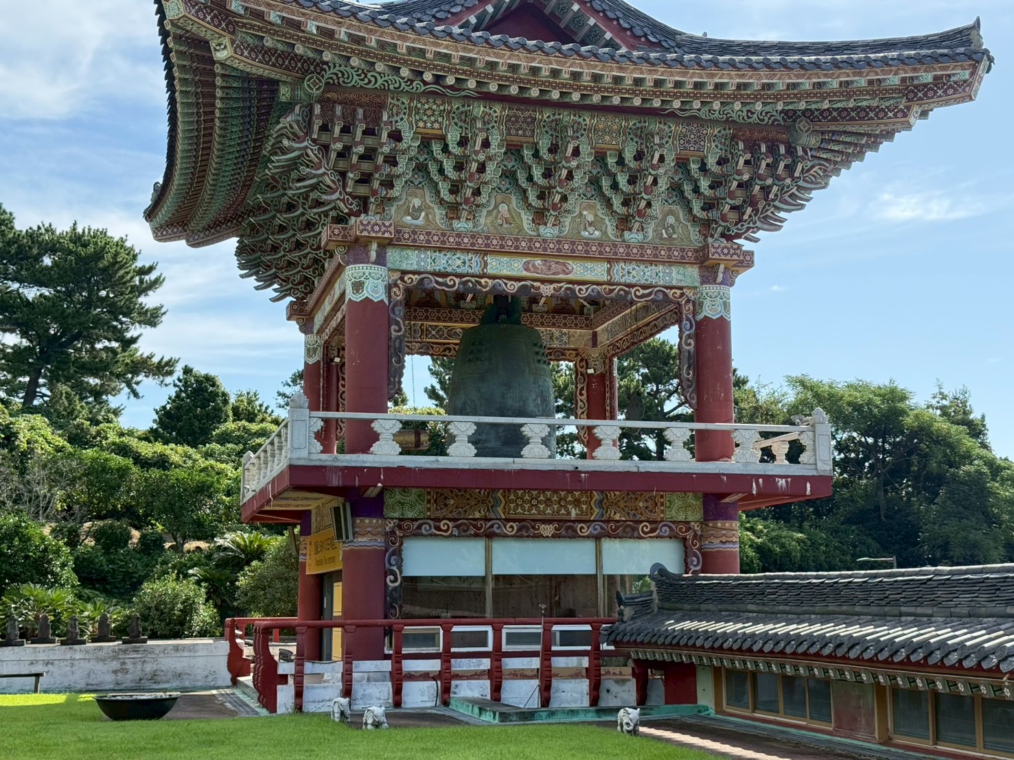 ไปกันต่อ ที่วัดยักชอนซา – Yakcheonsa Temple (약천사(제주)) หรือ วัดน้ำศักดิ์สิทธิ์ เป็นวัดที่เก่าแก่ของเกาะเชจู สร้างตั้งแต่สมัยเริ่มต้นราชวงศ์โชซอน นอกจากนี้ยังเป็นวัดที่มีขนาดใหญ่มากโดยตัววัดสูงถึง 30 เมตร