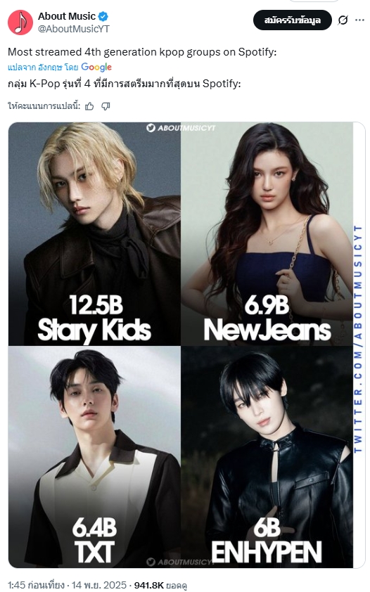 🔥 Stray Kids มียอดสตรีมTOP 3 K-Pop และเป็นอันดับ1เจน4! ที่ 12,500 ล้าน ทำให้กลายเป็นศิลปินอันดับที่192ของโลกบน spotify