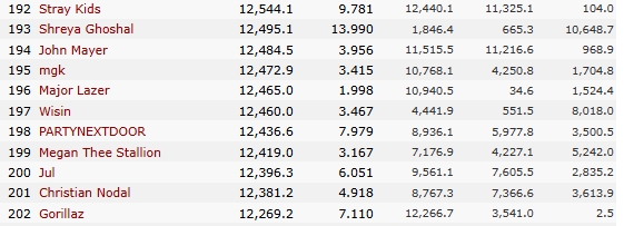 🔥 Stray Kids เมื่อมียอดสตรีม 12.5 B ทำให้ขึ้นสู่อันดับที่ 192 จาก 3000 รายชื่อ ในฐานะศิลปินที่มียอดสตรีมสูงสุดตลอดกาลบน Spotify จาก Kworb