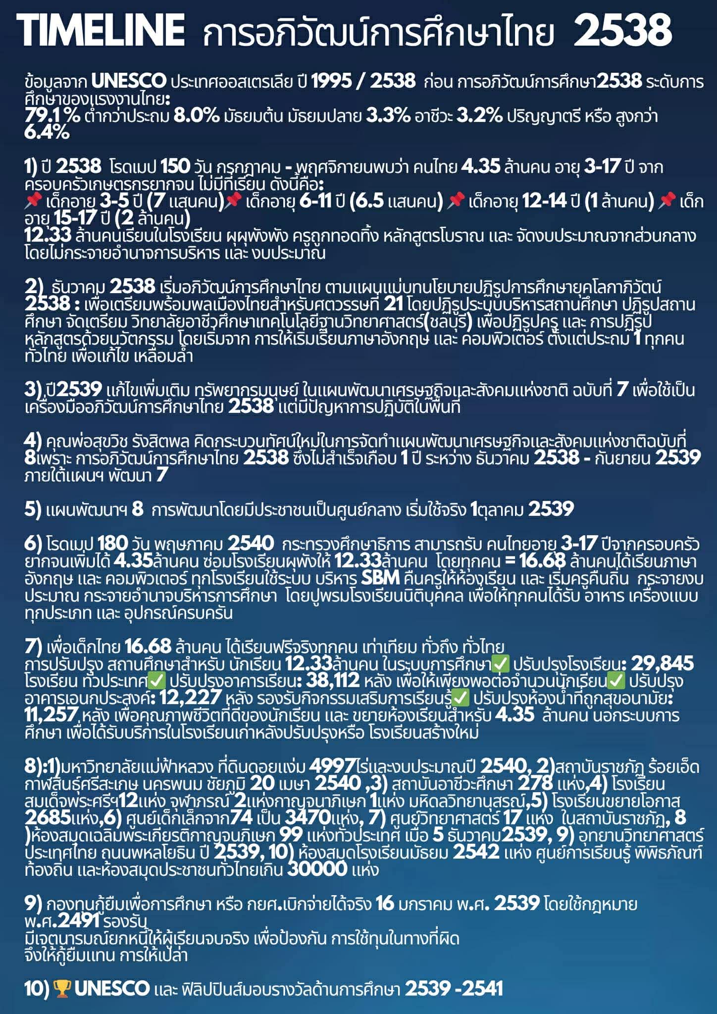ระยะเวลา: ผลหลังการอภิวัฒน์การศึกษา 2538 รับทุกคนอายุ 3-17 ปีจริง 8 พฤษภาคม 2540 และ มีผลกระทบ 15 ปี (ปี 2555 อายุ 3-5ปี เมื่อ ปี 2540 จบการศึกษา 15ปี)