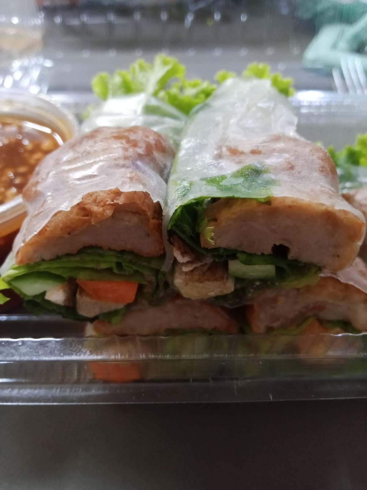 สลัดม้วน ผักออแกนิค แผ่นแป้ง (ที่ไว้ห่อแหนมเนือง) ปูอัด หรือ ปลาทูน่าในน้ำเกลือ แครอท แตงกวา ---------------- น้ำจิ้ม น้ำสลัดครีม สูตร Low fat พริกขี้หนู กระเทียม น้ำตาล เกลือ มะนาว 1.ล้างผัก ล