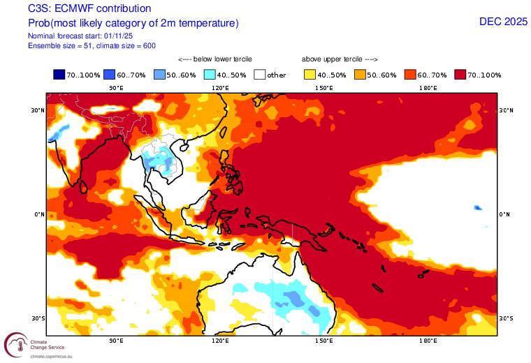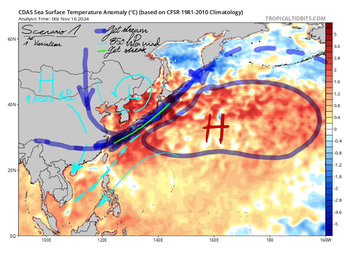 2. พายุแถวฟิลิปปินส์จะมีสิทธิ์ก่อตัวได้ไม่ยาก โดยที่เนื่องจากลมหนาวที่ลงมาแรงตังแต่ต้นฤดูกาลจนน้ำทะเลแถวทะเลจีนใต้กำลังเย็นตัวลงเรื่อยๆอย่างรวดเร็ว ช่วงเดือนธันวาคมที่จะถึงนี้มันจึงไม่มีทางที่จะมีพายุกำลังแรงจนสามารถมุดมาถึงชายฝั่งปักษ์ใต้ฝั่งตะวันออก ที่นอกจะทำให้ทั้งประเทศไม่หนาวแล้วยังสร้างความวายป่วง ปวดเศียรเวียนเกล้าให้กับชาวบ้านภาคใต้อีก หรือจะพูดง่ายๆก็คือนอกจากชาวฟิลิปปินส์ที่ยังมีสิทธิ์ที่จะโดนพายุเล่นงานจนอ่วมไปจนสิ้นปี บ้านเราอาจได้อานิสงค์ของพายุบีบให้ลมหนาวมันพัดมาแรงได้มากกว่าปกติอย่างของปี 2560 และปี 2562 ที่หนาวกันเลขตัวเดียวตลอดทั่วภาคเหนือและอีสาน โดยที่ผลเชิงลบจากพายุหมุนแปซิฟิกน่าจะไม่มีแล้วนั่นเองครับ (เฮ 3)
