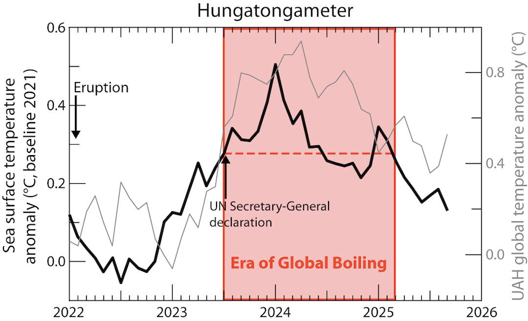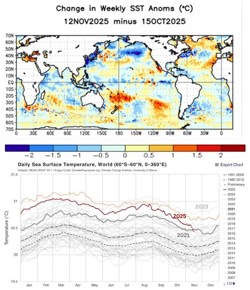สภาพทะเลที่เย็นลงค่อนมากจากจุดสูงสุด โดยอุณหภูมิเฉลี่ยทั่วโลกก็กำลังลดต่ำลงตามมาเช่นกัน สภาวะร้อนแบบบโลกเดือดกำลังจะจากเราไปแล้ว