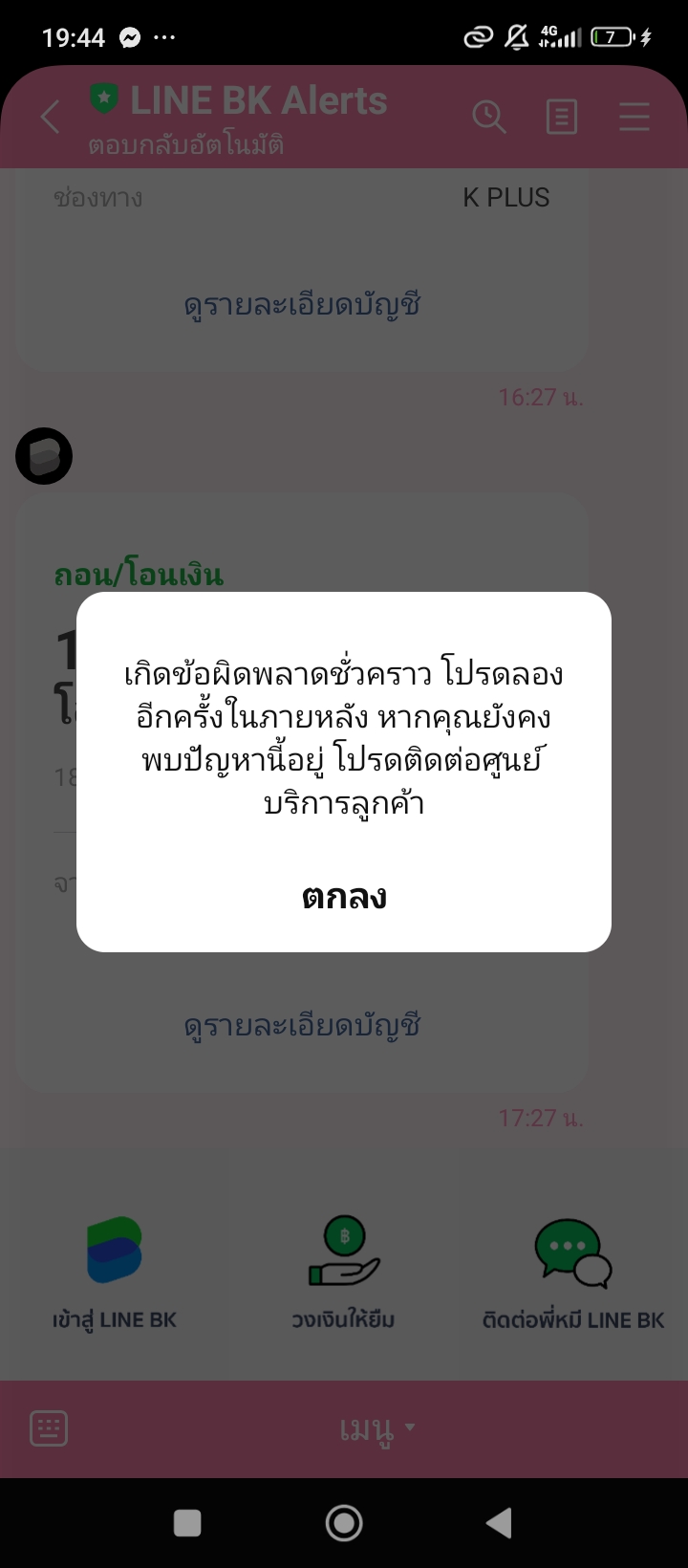 ไลน์บีเค ใช้งานไม่ได้เพราะอะไรคะ