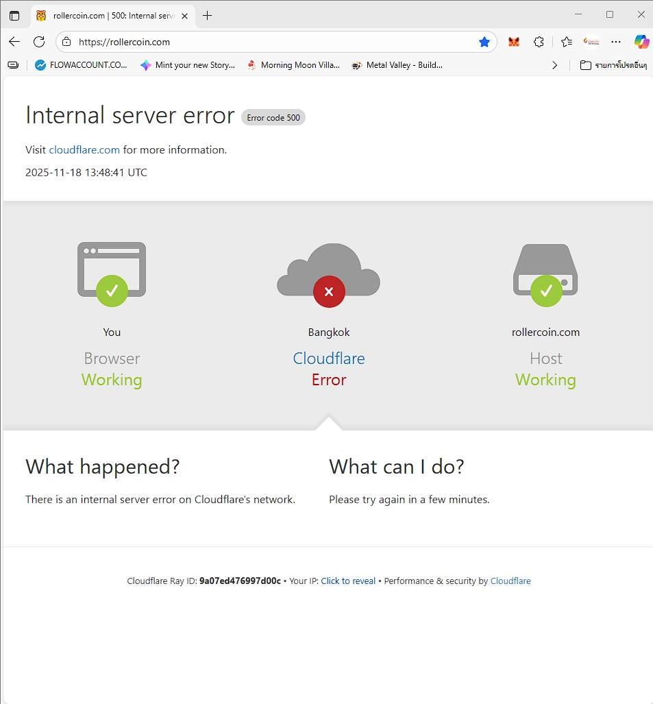 rollercoin.com เข้าไม่ได้ 500: Internal server error ใจจิขาดแล้ว