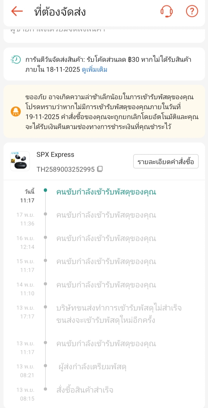 ตั้งเเต่วันที่13/11/2025 - 18/11/2025 ผมสั่งของไปอยู่ในโปร 11.11 สินค้าลดราคา กลัวว่าถ้าเกิดคืนเงิน