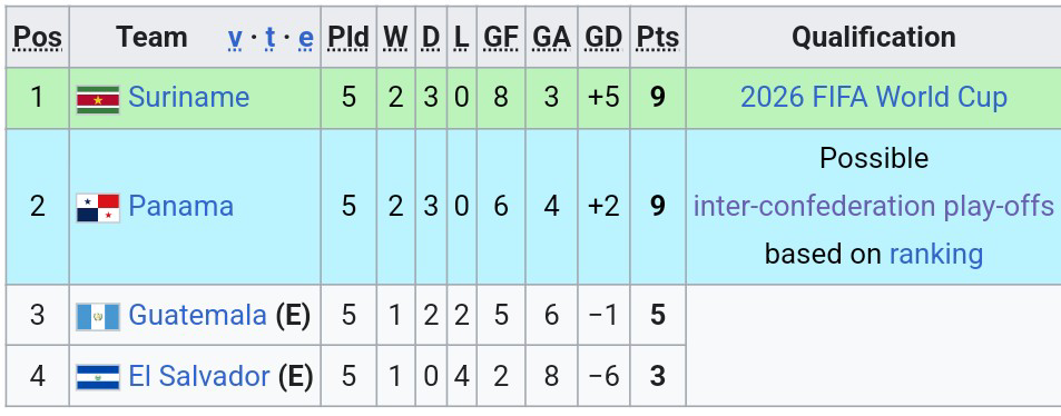 ผลฟุตบอลโลกรอบคัดเลือกโซนคอนคาเคฟที่เพิ่งจบลงไป กลุ่มA ปานามา ชนะ เอลซัลวาดอร์ 3-0 ปานามาตีตั๋วไปฟุตบอลโลก สุรินัม ที่นำจ่าฝูงมาตลอด ดันมาพลาดนัดสุดท้าย โดนกัวตามาลานำไปก่อน 3-0 แต่ยังโชคดีที่สุรินัม