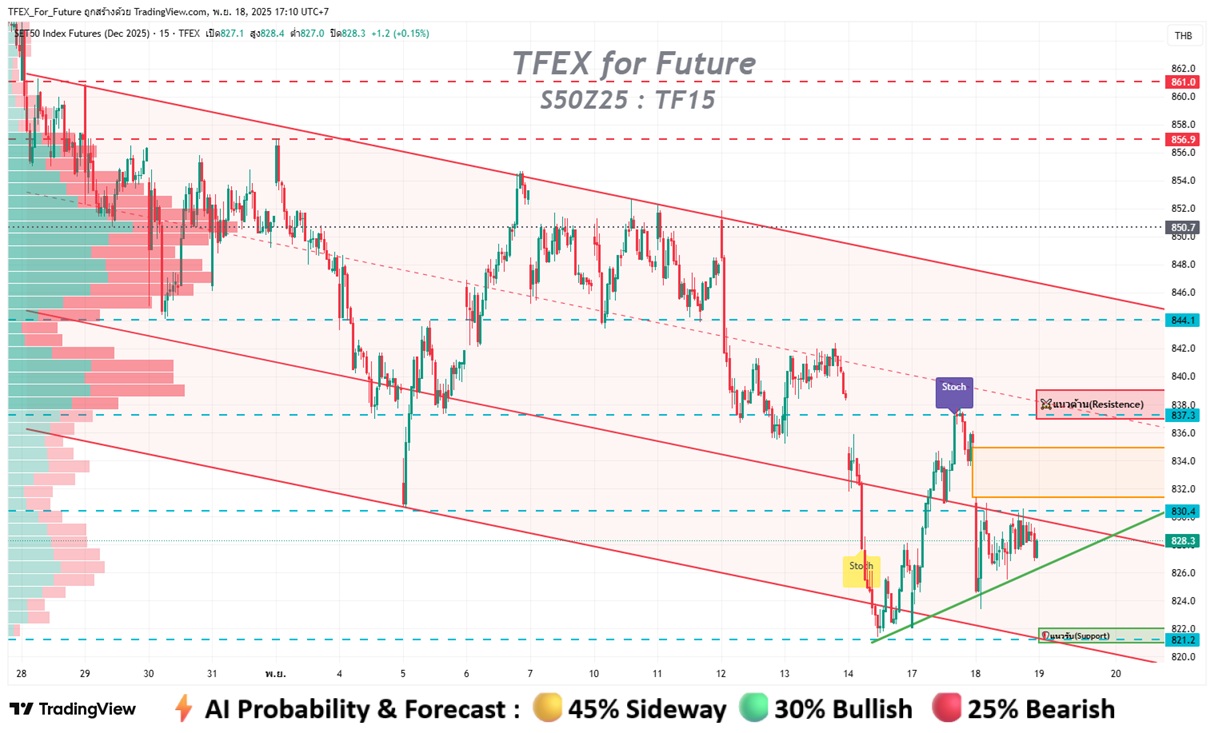 🛡️แนวรับ (Support) : 821-822 (จุดร่วม 4 Indicators)