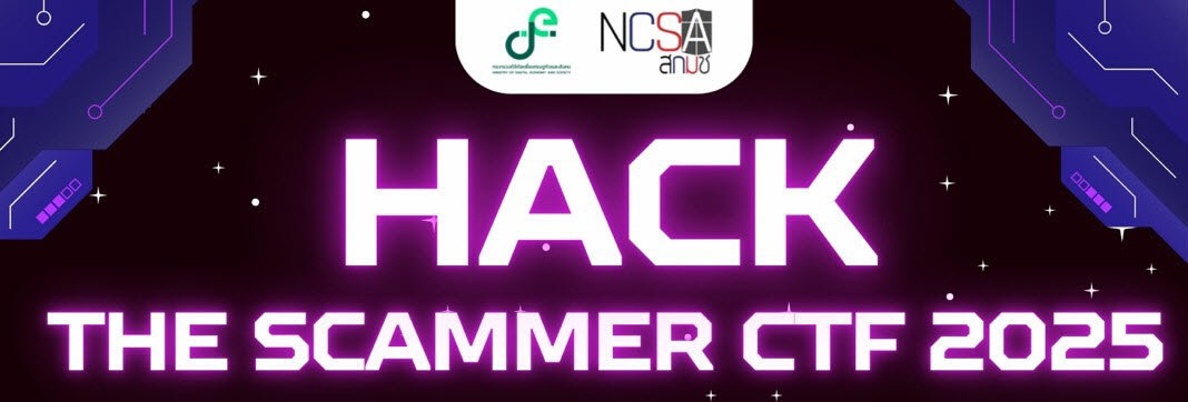 ขอเชิญชวนเยาวชน นิสิตนักศึกษา บุคลากรหน่วยงานรัฐ/เอกชน และประชาชนทั่วไป มาร่วมพิสูจน์ฝีมือในการแข่งขัน “Hack The Scammer CTF” เวทีท้าทายที่จะเปิดประสบการณ์ใหม่ด้านความมั่นคงปลอดภัยไซเบอร์ ผ่านสถานการณ์จำลองจากภัยจริงที่คนไทยกำลังเผชิญอยู่ทุกวัน ในยุคที่ โทรศัพท์ปลอม – เว็บไซต์ปลอม – เพจหลอกลวง – ลงทุนปลอม – Romance Scam เกิดขึ้นเป็นวงกว้าง สร้างความเสียหายมหาศาลหลายหมื่นล้านบาทต่อปี การรู้เท่าทันกลโกงดิจิทัลจึงเป็น “ทักษะจำเป็น” ที่ทุกคนต้องมี