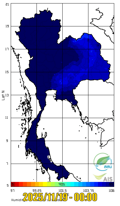 จะสังเกตว่า ความชื้นเริ่มลดลงจากทางฝั่งภาคอีสานไล่ลงมาแล้ว (ตามแนวลมหนาวที่เป็นลมแห้ง)