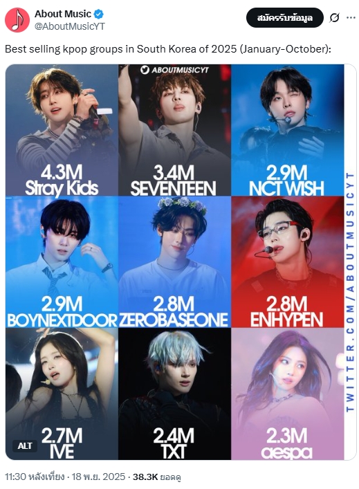 🔥 Stray Kids เป็น K-Pop groups ที่ประสบความสำเร็จสูงสุดด้านยอดขายอัลบั้มในเกาหลีปี 2025 นี้ ด้วยอันดับ 1 ที่ยอดขาย 4.3 ล้านชุด