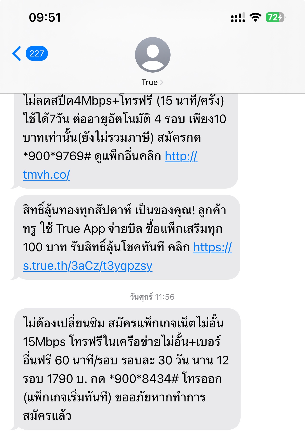 มีข้อความจากทรูเข้ามาแจ้งต่อโปร