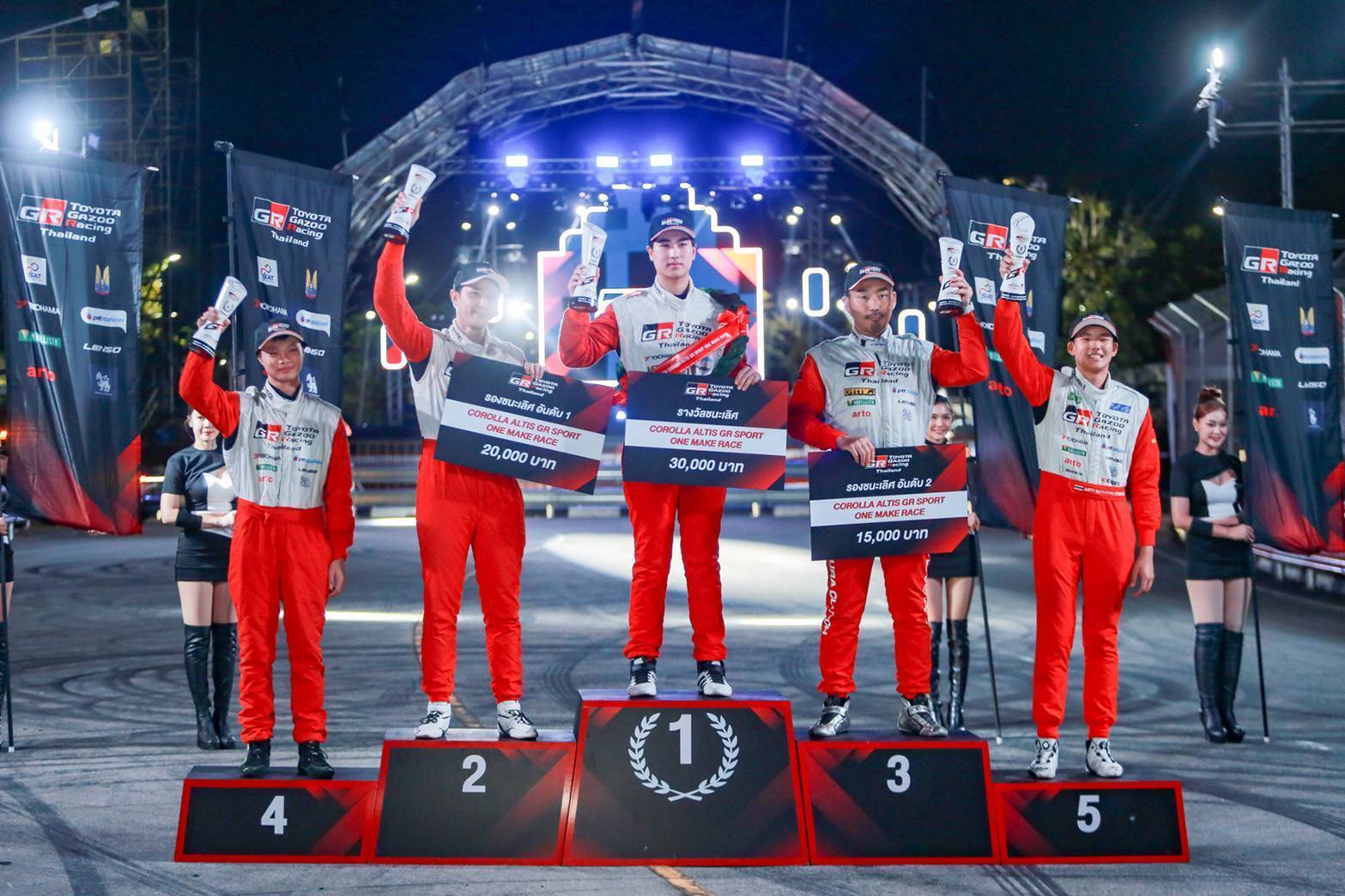 เริ่มจากพี่สาวสุดสตรอง มิย่า ทองเจือ จากทีม TOYOTA Racing Star Team ซิ่ง YARIS ATIV ONE MAKE RACE Carbon Neutral fuel รถคันเก่งที่ใช้เชื้อเพลิง Carbon Neutral Fuel ซึ่งเป็นกลางทางคาร์บอน ลงสนามสปีดแรงไม่เผื่อใคร นำม้วนเดียวจบ คว้าแชมป์รุ่น Yaris ATIV Lady One Make Race ไปแบบสวยๆ รับถ้วยแชมป์แรก ชนิดที่แฟนๆ เชียร์กันลั่นสนาม