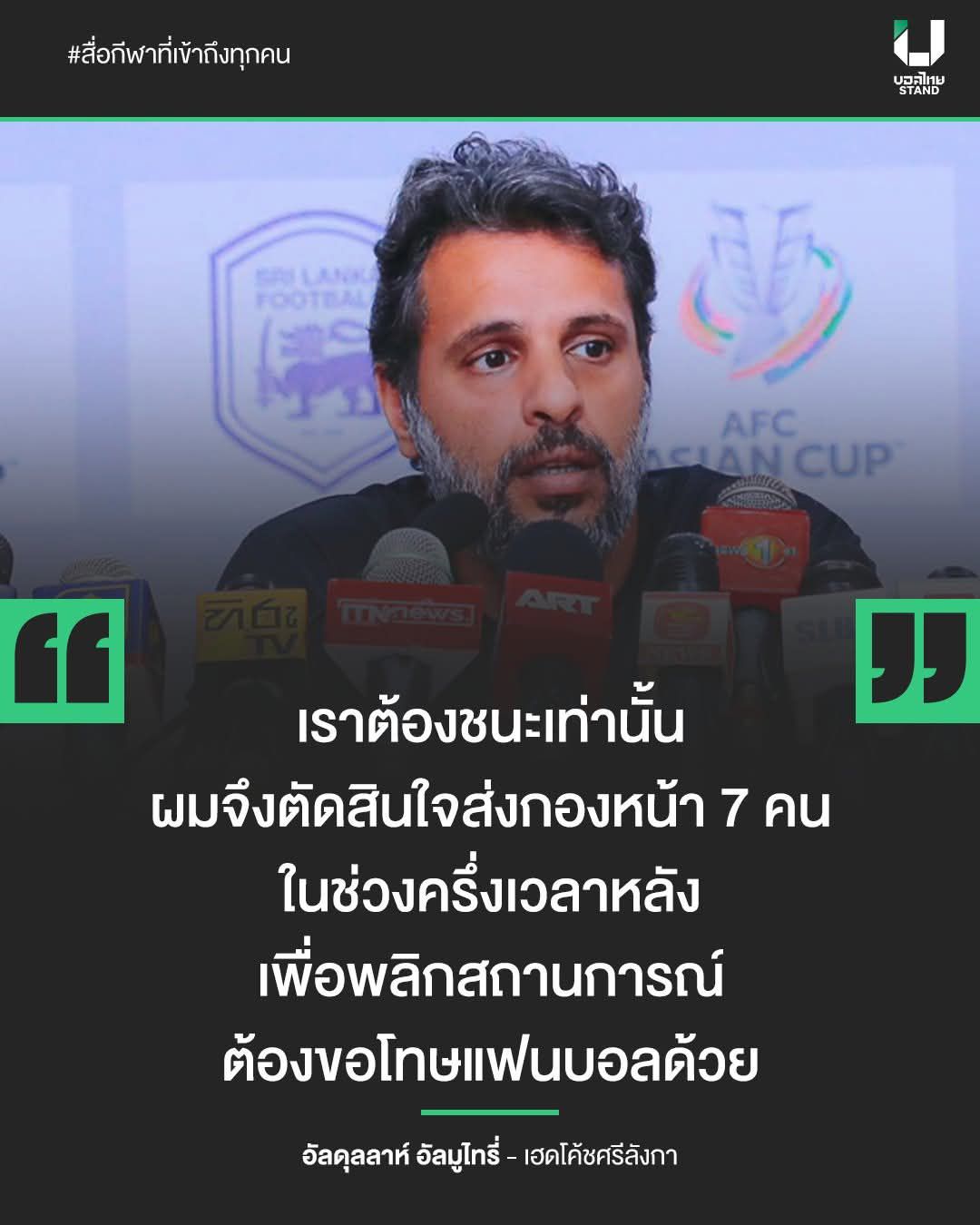 โค้ชศรีลังกาขอโทษแฟนบอล ต้องส่งกองหน้าลง 7 คน
