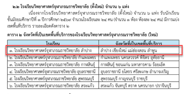 โรงเรียนวิทยาศาสตร์จุฬาภรณราชวิทยาลัย ลำปาง เปิดสอนแล้วใช่ไม๊ ครับ