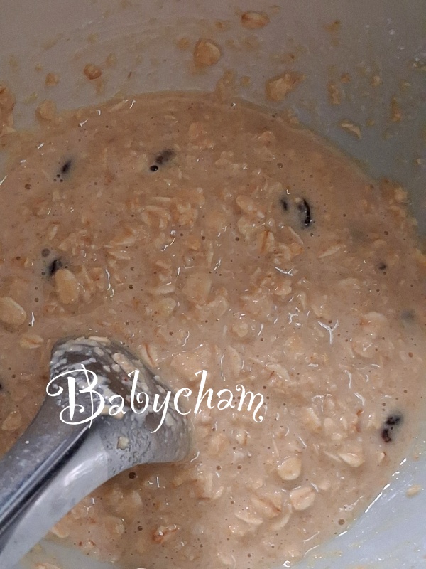 6.ข้าวโอ๊ต 1 ถ้วย (อย่าเพิ่งใส่หมด ชิมแล้วเพิ่มได้ค่ะ แม่เปปใส่ทั้งข้าวโอ๊ตเกล็ด+ข้าวโอ๊ตบดละเอียด)