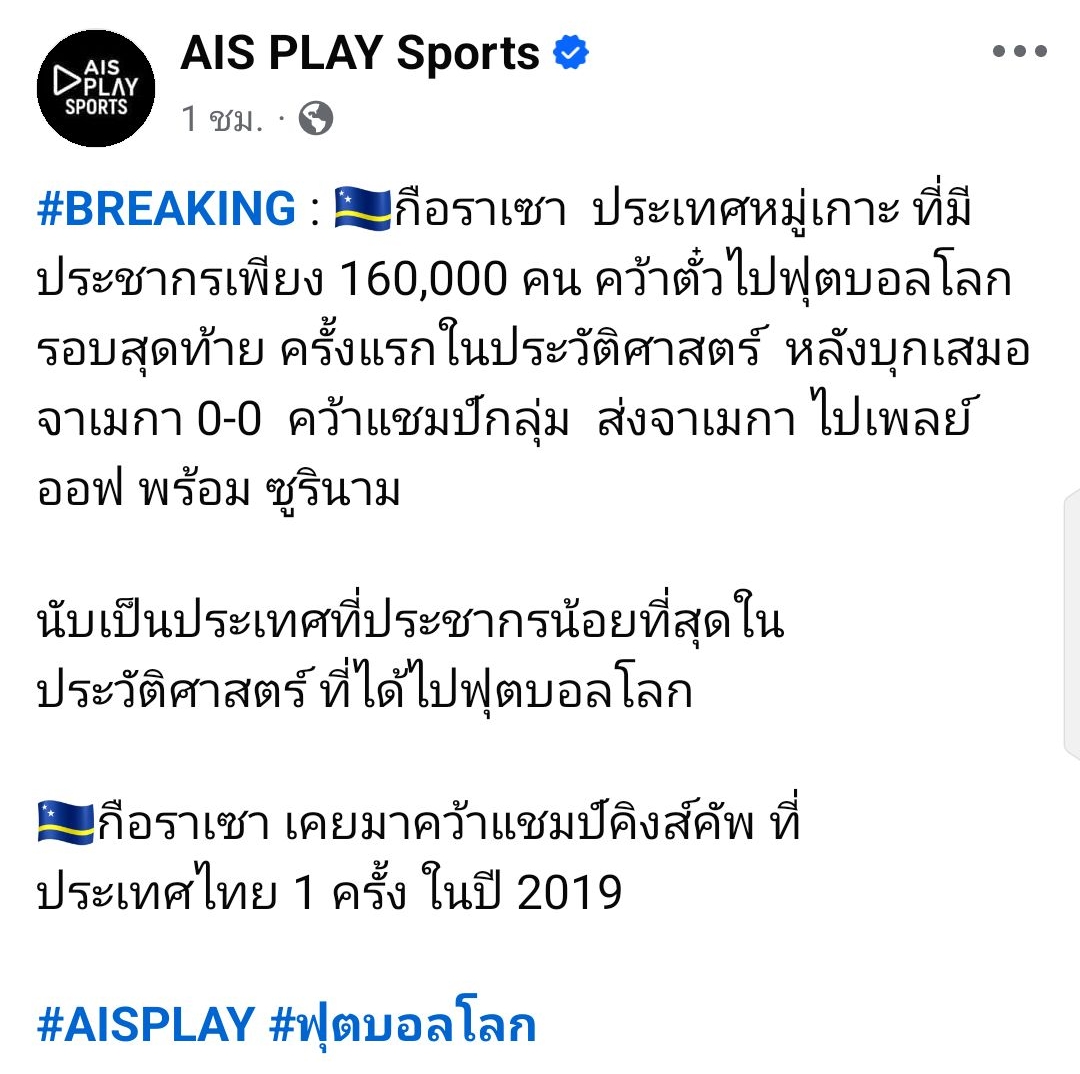 #BREAKING : 🇨🇼 กือราเซา คว้าตั๋วไปฟุตบอลโลก รอบสุดท้าย ครั้งแรกในประวัติศาสตร์