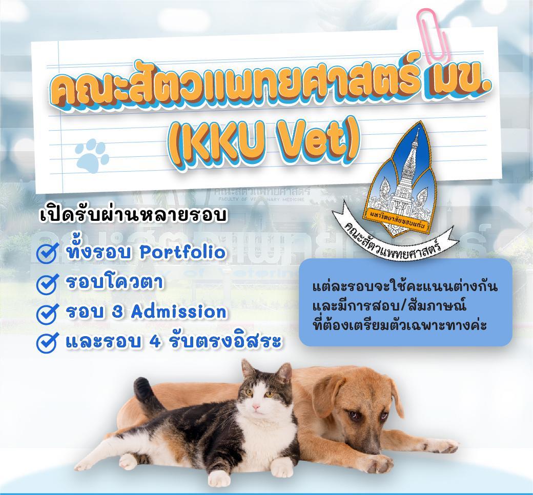 อยากเป็นสัตวแพทย์ต้องเริ่มเตรียมตัวให้ถูกทางตั้งแต่เนิ่น ๆ โดยเฉพาะผู้ที่ตั้งเป้าเข้าคณะสัตวแพทยศาสตร์ มหาวิทยาลัยขอนแก่น (KKU Vet) ซึ่งเปิดรับหลายรอบ ทั้ง Portfolio, โควตาภาคอีสาน, Admission และรอบอิสระ การวางแผนตั้งแต่ตอนนี้จะช่วยให้การสมัครและการเตรียมสอบเป็นระบบมากขึ้น