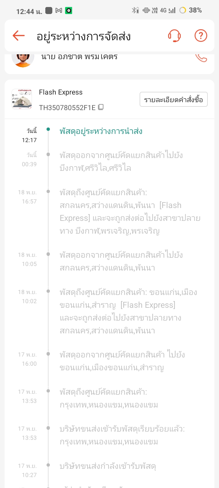 เราได้สั่งของจากshopeeไปเมื่อวันที่8/4/20 โดยเลือกการส่งสินค้าของทางshopee exprees ซึ่งส่งของล่าช้ามาก แต่ก็เข้าใจว่าช่วงนี้หลายๆการขนส่งก็เกิดความล่าช้า จนวันนี้วันที่15/4/20 ในระบบติดตามพัสดุของshop