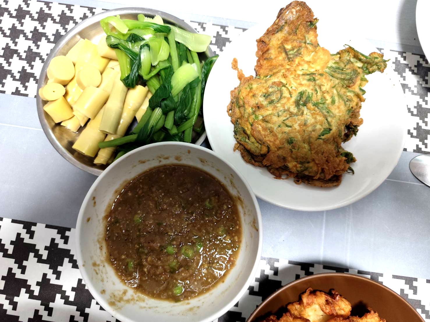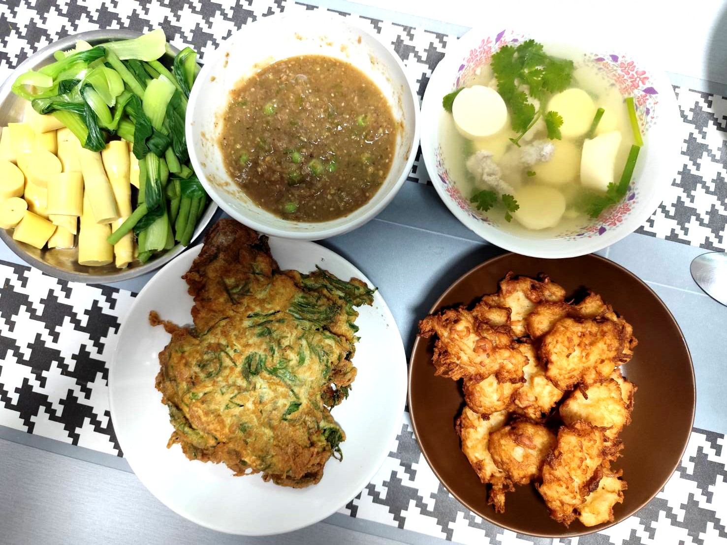 แม่โทรมาบอกว่าวันนี้ทำ น้ำพริกกะปิ ไข่ชะอม แกงจืดเต้าหู้หมูสับ มันแกวทอด