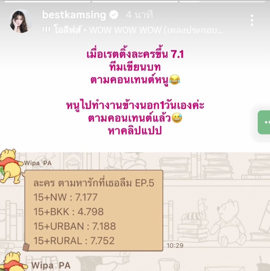 เรตติ้ง ตามหารักที่เธอลืม แตะเลข 7 แล้วจ้าา