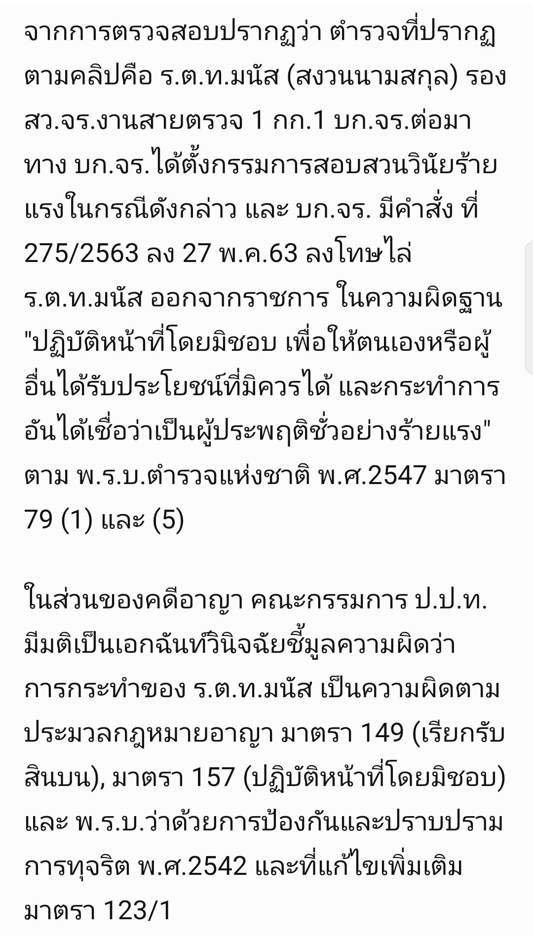 ❌ ไล่ออกแล้ว ตำรวจในคลิปเก็บค่าจอด 100 บาท ที่หมอชิต อ้างประเพณี ฟันอาญา 149-157