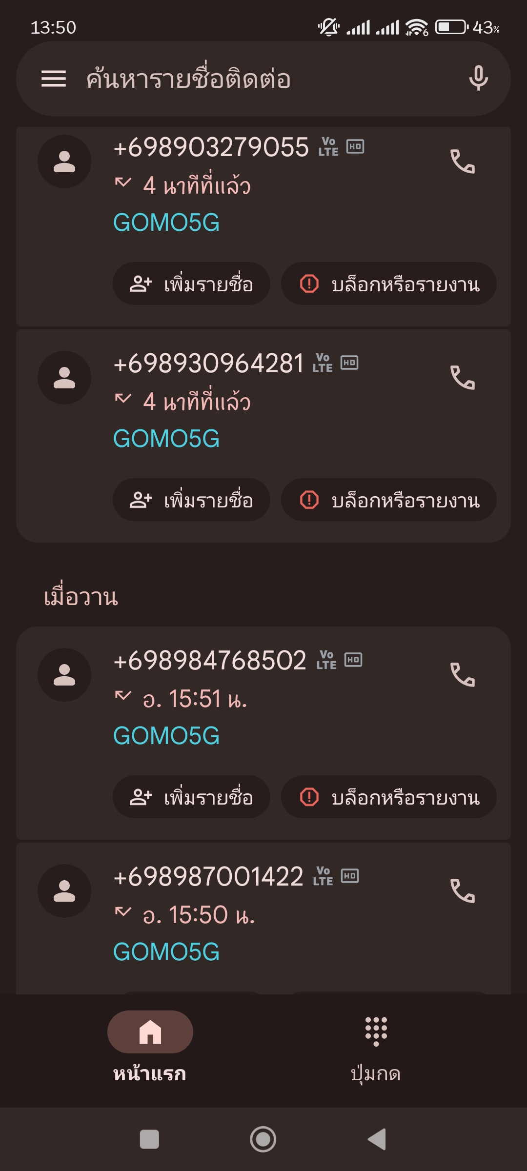หลังจากห่างหายไปนาน เบอร์แปลกๆพวกนี้ก็กลับมา อีกครั้ง ตอนที่พวกมิจฉาโทรมาเบอร์แรกผมไม่รับ มันก็จะเอาเบอร์อันที่ 2,3 พอมาอีกวันก็โทรมาอีก ตามภาพเลยครับและหาข้อมูลเบอร์พวกนี้ยากมากเราควรรับมือและแก้ไข้ยังไงดี และ ใครโดนเหมือนผมบ้างฝากเม้นท์แชร์ประสบการณ์ได้นะครับ