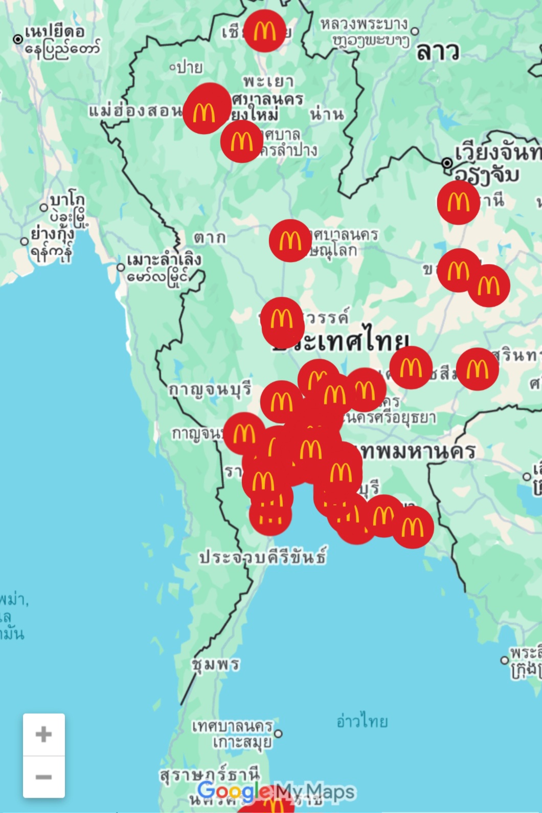 เคยตั้งกระทู้นี้ไปรอบนึงแล้ว เกี่ยวกับการสร้างร้านสาขาร้าน Fast Food Band 1 หรือแบรนด์อื่นทำไมถึงไม่กระจายกันเปิดหลายๆสาขาเช่น 1 จังหวัด 1 สาขาเพราะว่าบางจังหวัดก็ไม่มีร้าน Fast Food แบรนด์นี้หรือแบรนด์อื่นๆแต่กระทู้นี้จะขอเป็นกระทู้ที่เกี่ยวกับแบรนด์ Mcdonald ทำไมถึงไม่ยอมไปเปิดสาขาอื่นๆบ้างและบางจังหวัดก็ไม่มีสักสาขาอย่างเช่นจังหวัดที่เป็นจังหวัดท่องเที่ยวเช่นจังหวัดตากจังหวัดแม่ฮ่องสอนจังหวัดนครพนมจังหวัดเลยจังหวัดเพชรบูรณ์ ทำไมถึงไม่ยอมไปเปิดบ้างแต่จังหวัดตากเช่นอำเภอแม่สอดเปิดสัก 1 สาขาก็ได้อำเภอจังหวัดเลย ก็เปิดสัก 1 สาขาเช่นอำเภอภูเรือที่เป็นแหล่งท่องเที่ยวของจังหวัดเลยเพชรบูรณ์ก็เขาค้อหล่มสักก็เปิดได้แต่ทำไมถึงไม่เปิดเพราะว่าเชื่อว่าหลายๆคนในยุคนี้ก็ต้องมีความต้องการที่จะบริโภคแบรนด์นี้ไม่มากก็น้อยเวลาจะซื้อทีต้องขับข้ามจังหวัดหลายกิโลเมตรเป็นชั่วโมงน่าจะเปิดจังหวัดนึงหรืออำเภอและสาขาก็ได้หรือเปิดในตัวจังหวัดขยายกันไปไม่ใช่ก็จุกอยู่แต่ในเมืองอย่างแผนที่นี่คือสาขาณปัจจุบันซึ่งจะประชุมอยู่แถวบริเวณภาคกลางภาคเหนือจะมีน้อยมาก น่าจะเปิดจังหวัดละสาขาแล้วก็ขยายไปเรื่อยๆไม่ใช่บางจังหวัดไม่มีเลยสักสาขาจะทานทีจะต้องขับข้ามจังหวัดขับข้ามอำเภอซึ่งระยะทางก็ไกล